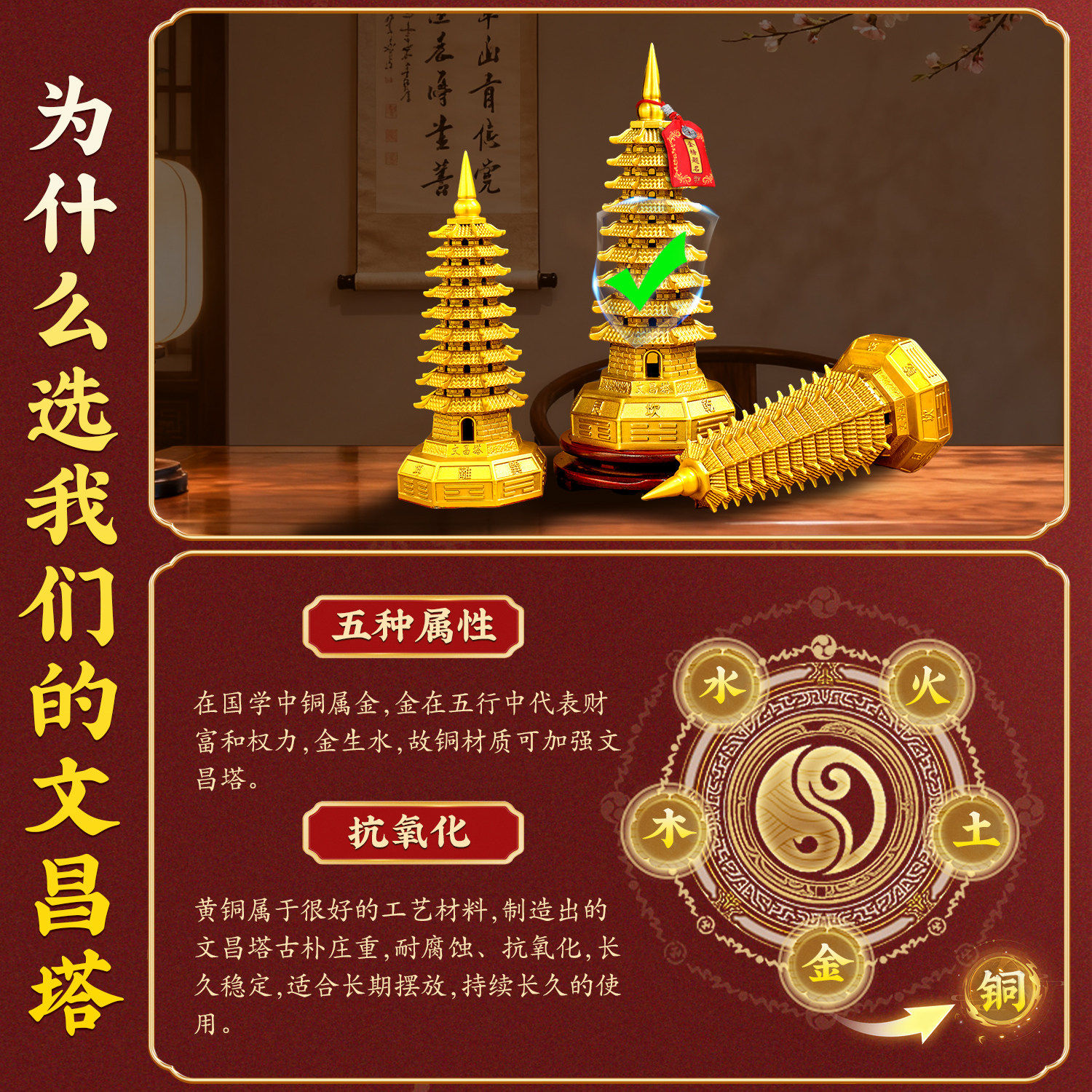 📚 文昌塔摆件纯铜13层的铜制九层铜质9层的旗舰店2026纯黄铜十三层