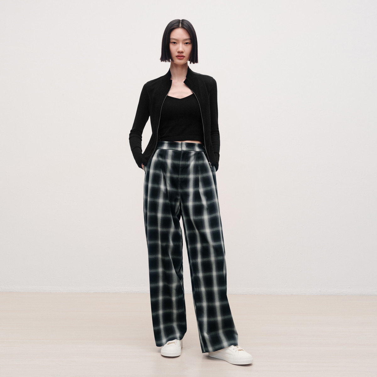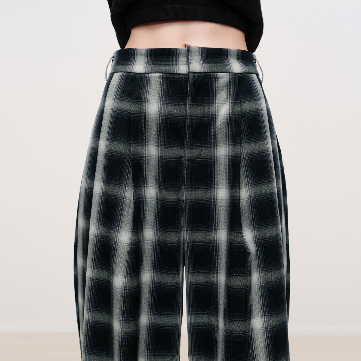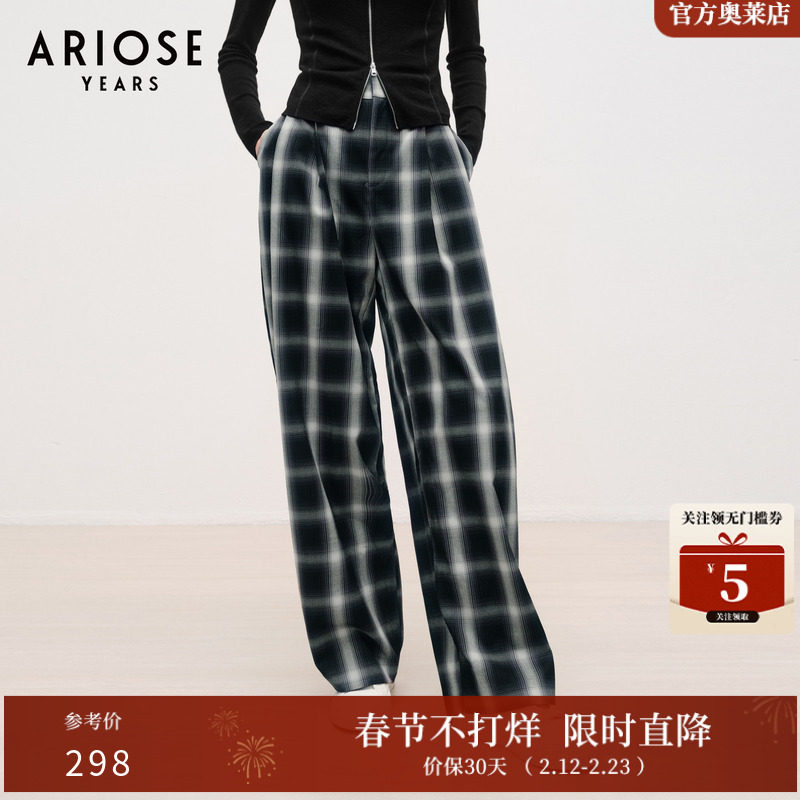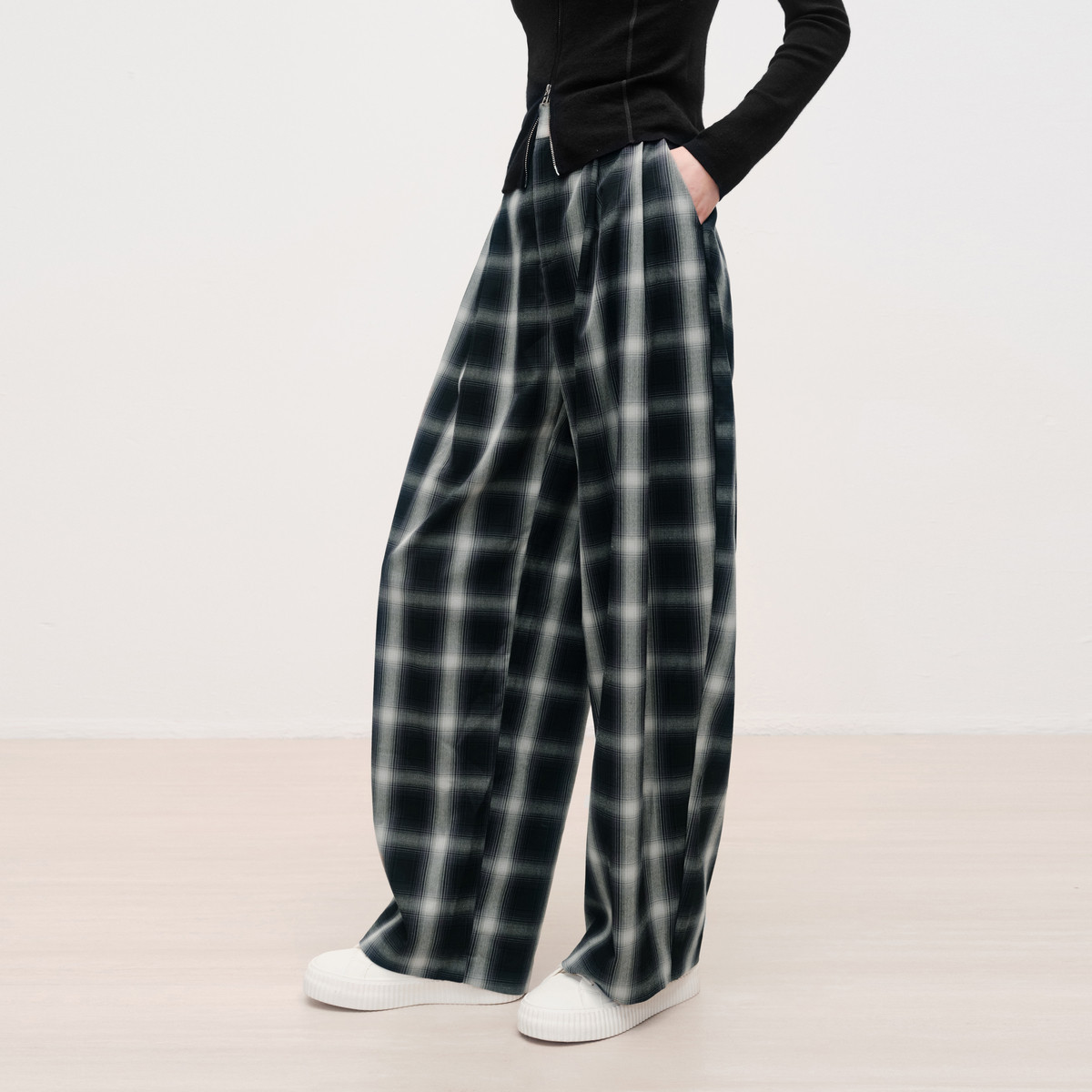 📚 艾诺丝雅诗复古时髦格纹垂感阔腿裤女春季新款显瘦裤子30813035