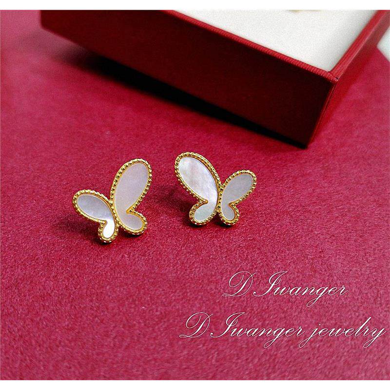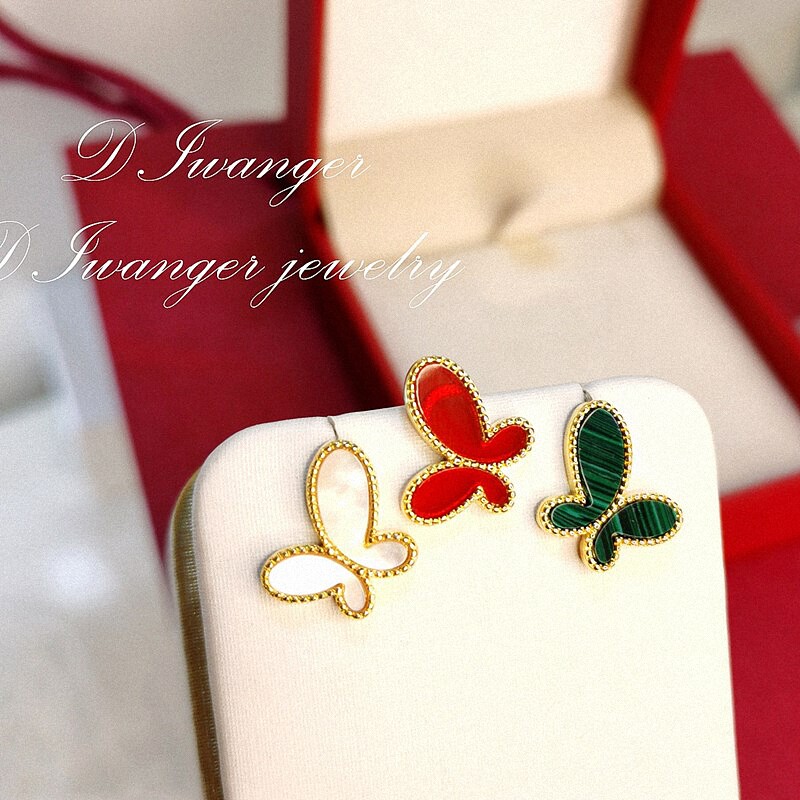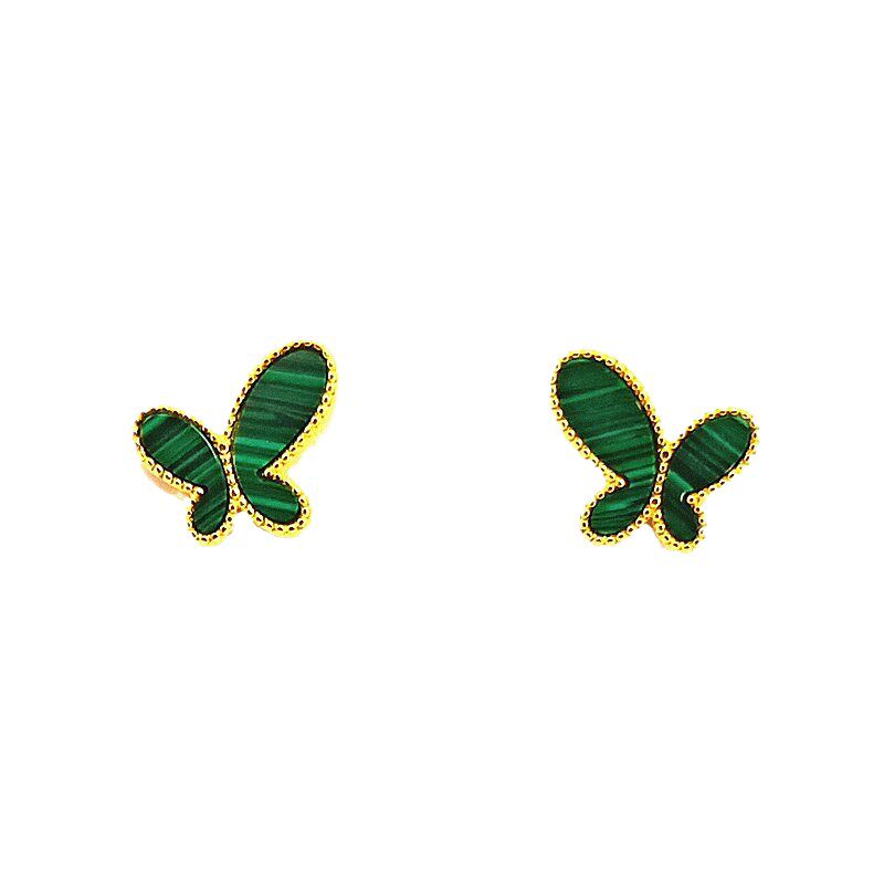 📚 22K金无.敌蝴蝶耳钉女白贝母孔雀石红玉髓纯银耳环个性气质蝴蝶结