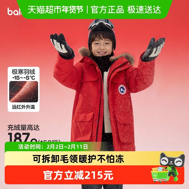 📚 巴拉巴拉童装儿童羽绒服毛领男女童冬装中长款加厚2025年新款外套