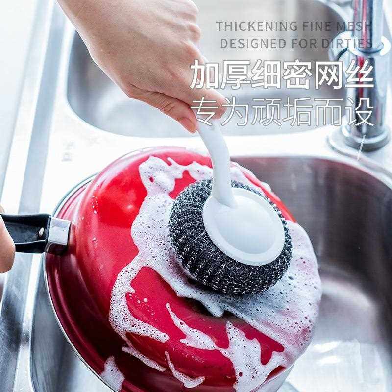 📚 新款直销创意清洁锅家用饭店用加长手柄钢丝球刷不沾油锅刷洗碗刷