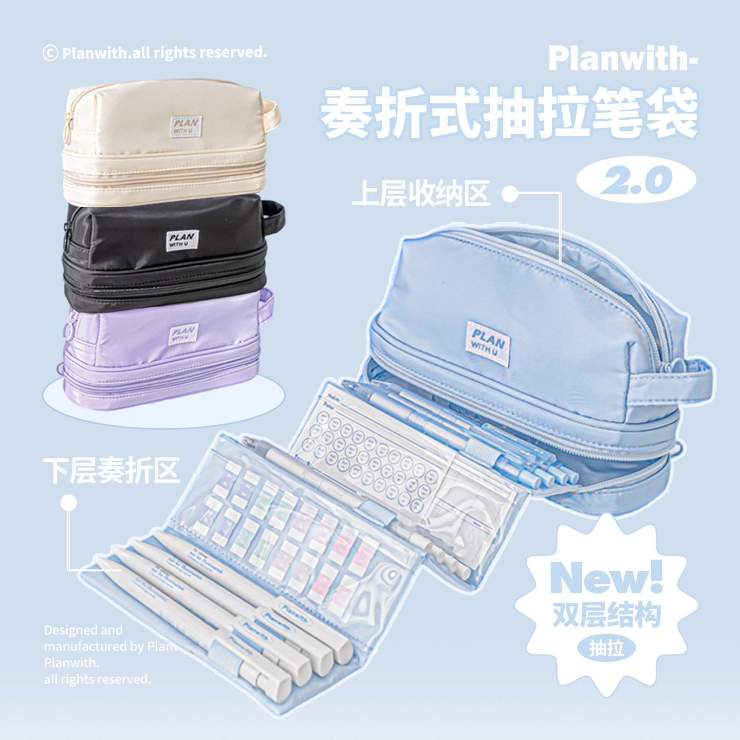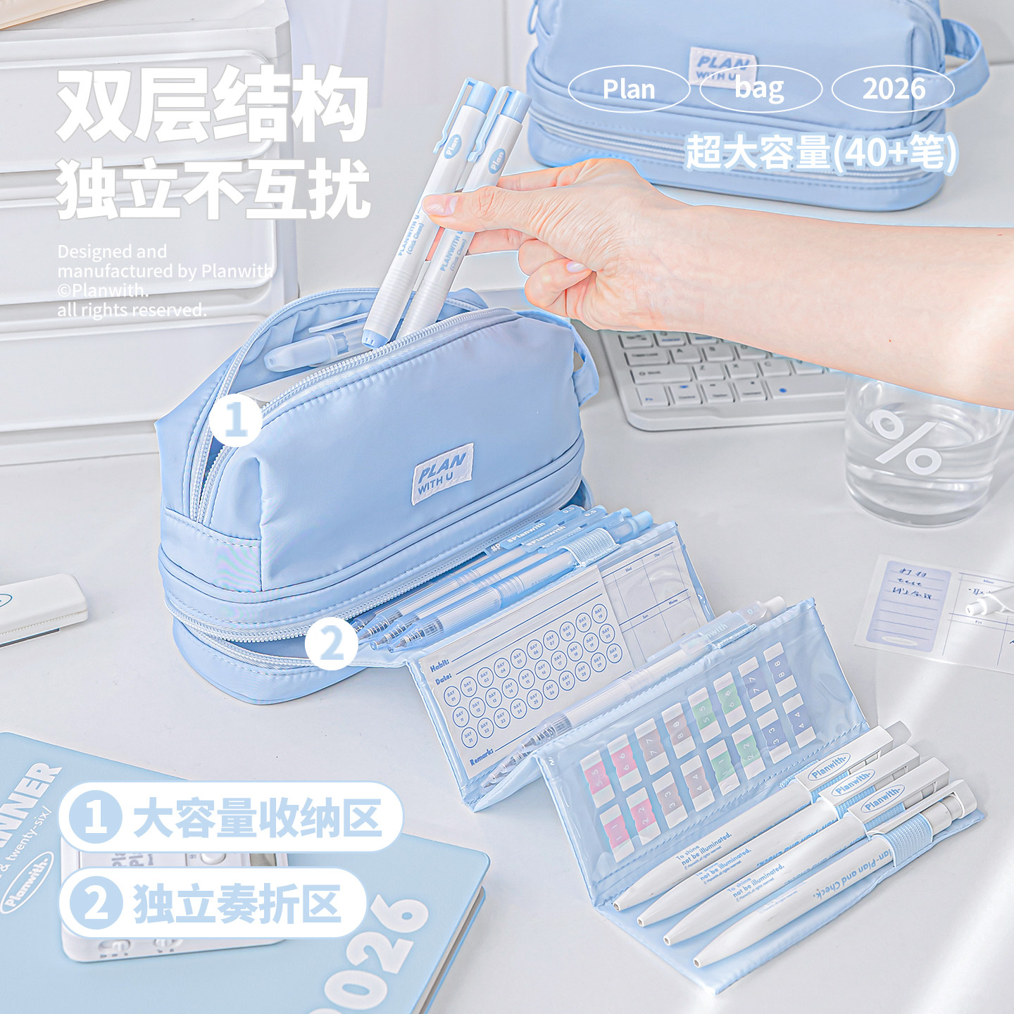 📚 Planwith奏折笔袋大容量文具袋初中女生男生文具盒高颜值ins风双层笔袋分区暗藏玄机文具收纳袋简约铅笔袋