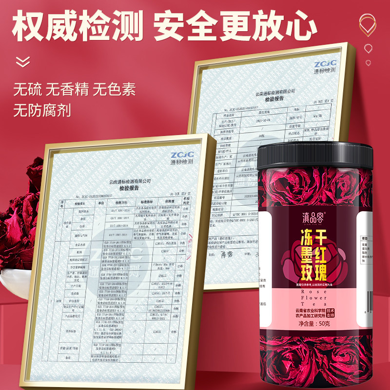 📚 农科院云南墨红玫瑰花冠正宗大朵冻干锁鲜无熏染重瓣玫瑰花茶泡水