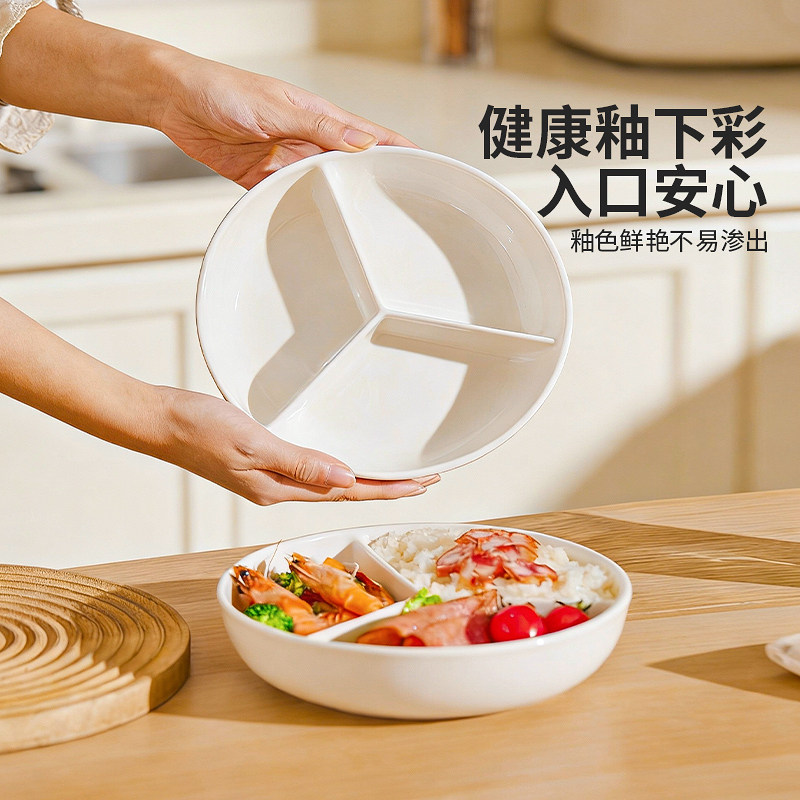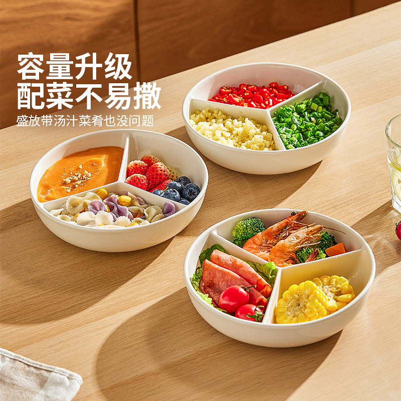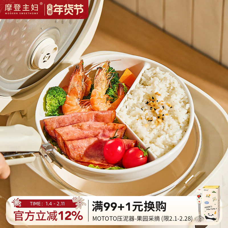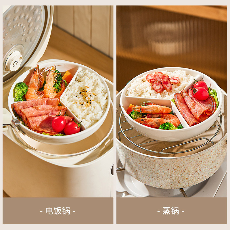 📚 摩登主妇陶瓷三分格蒸盘电饭锅蒸笼家用减脂盘子宝宝儿童辅食餐盘