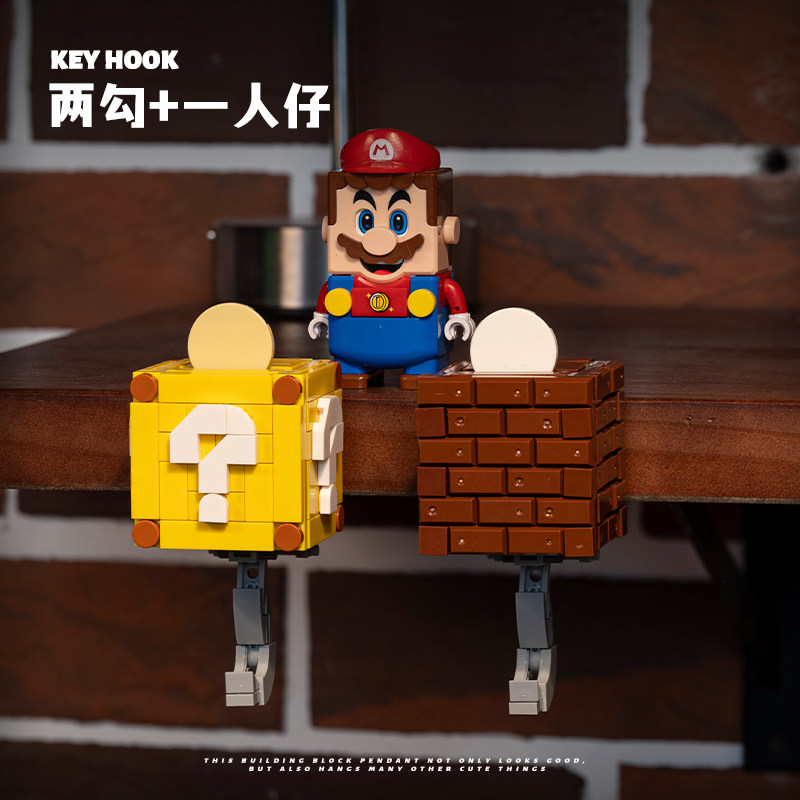 📚 中国积木创意MOC马里奥问号箱超级玛丽人仔钥匙挂钩积木拼装玩具