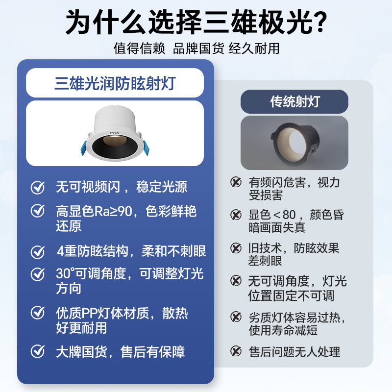 📚 【补全国】三雄极光护眼射灯深防眩小山丘嵌入led天花洗墙无主灯