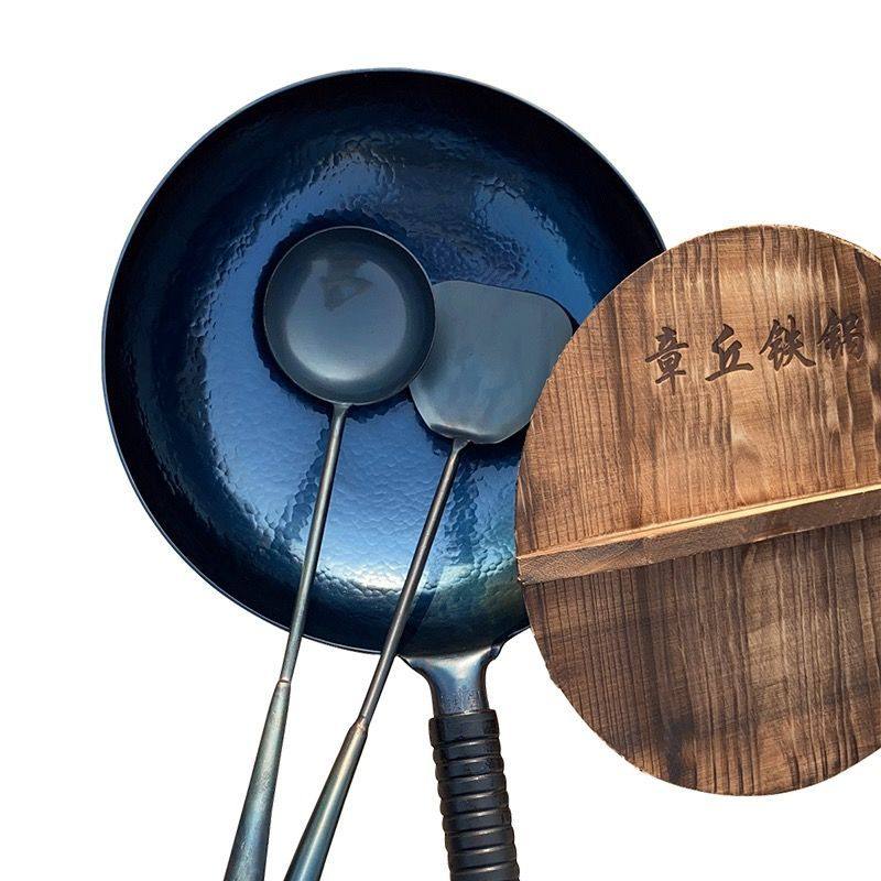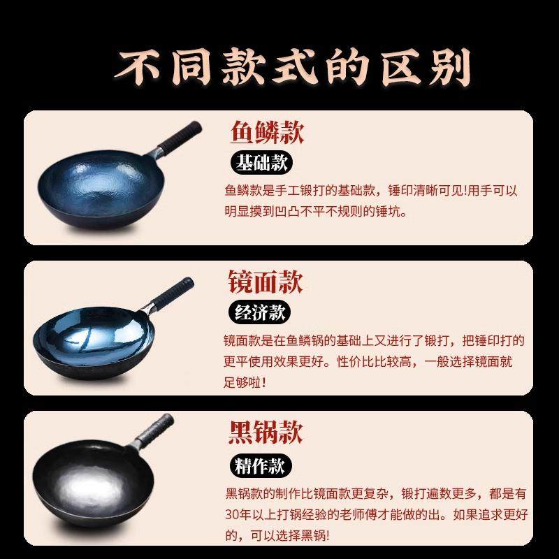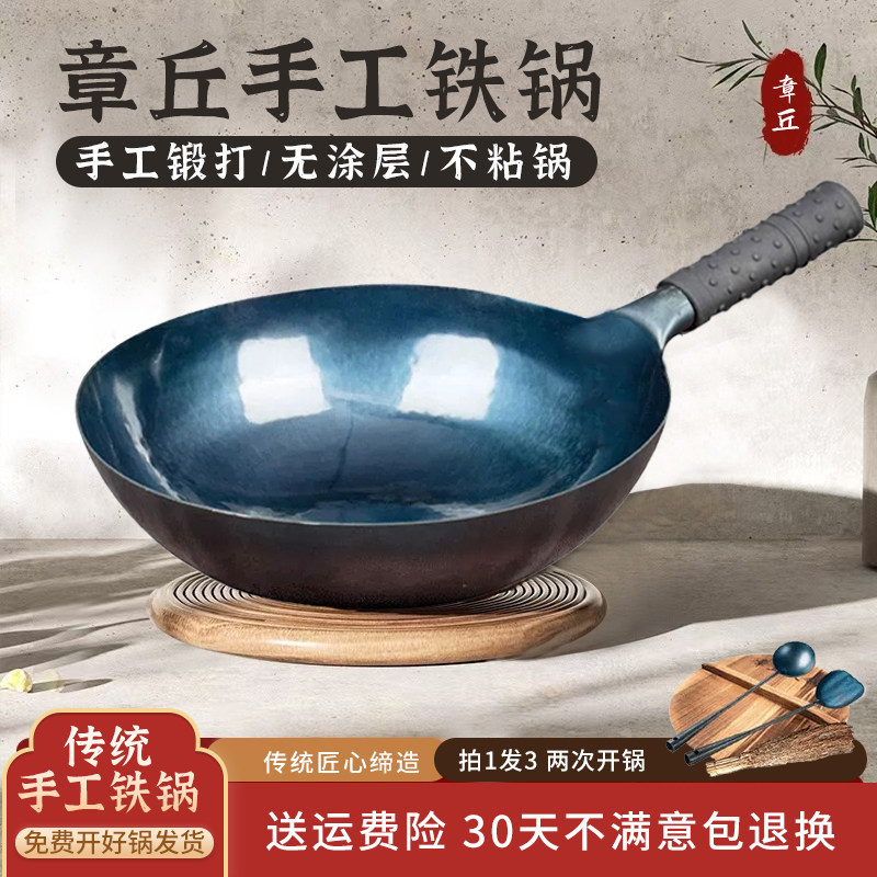 📚 正品纯手工章丘炒锅家用无涂层不粘锅传统老式铁锅无烟圆底铁锅子