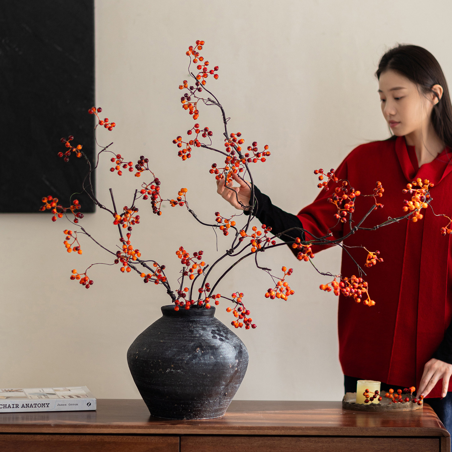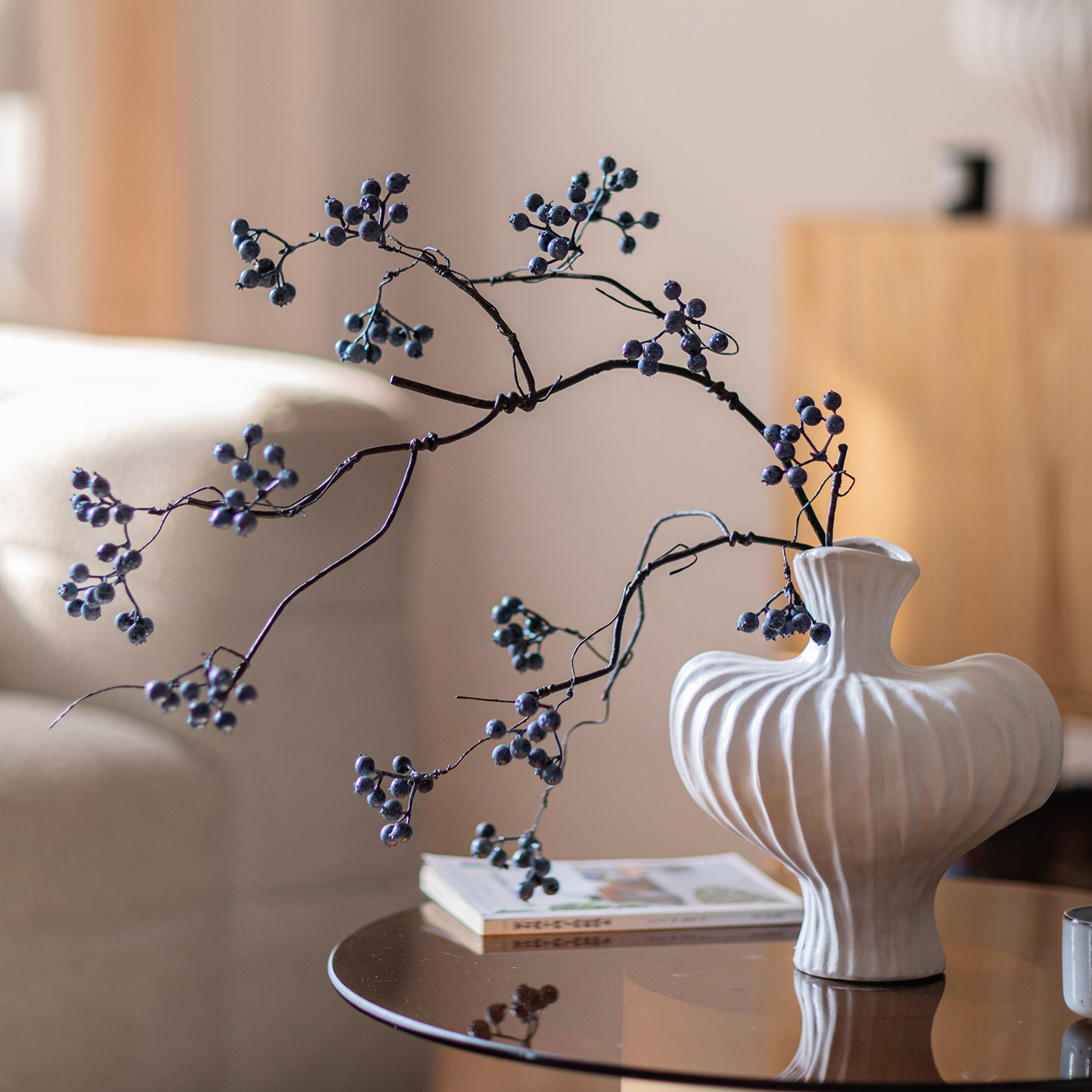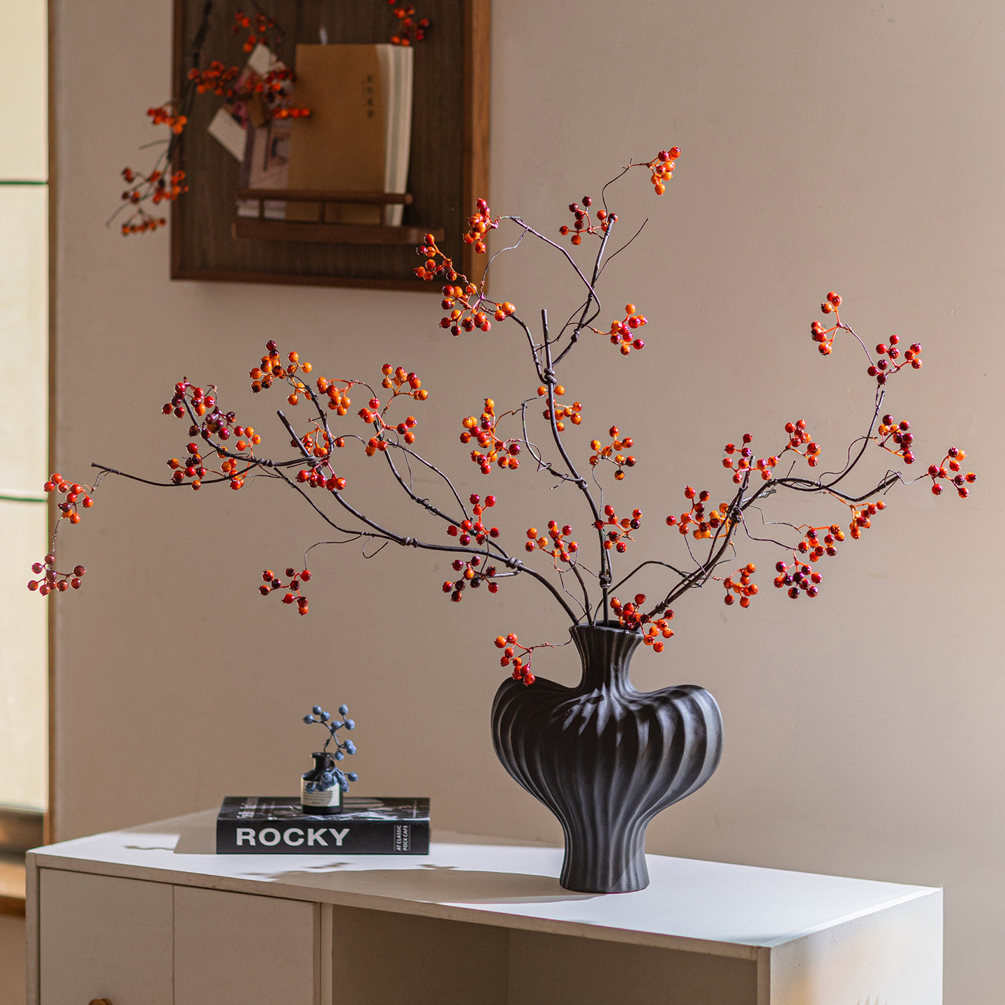 📚 高级感侘寂风仿真蔷薇果客厅马桑果山归来浆果装饰摆设发财果假花