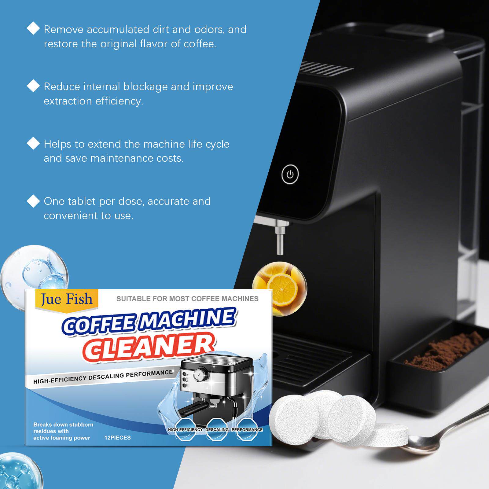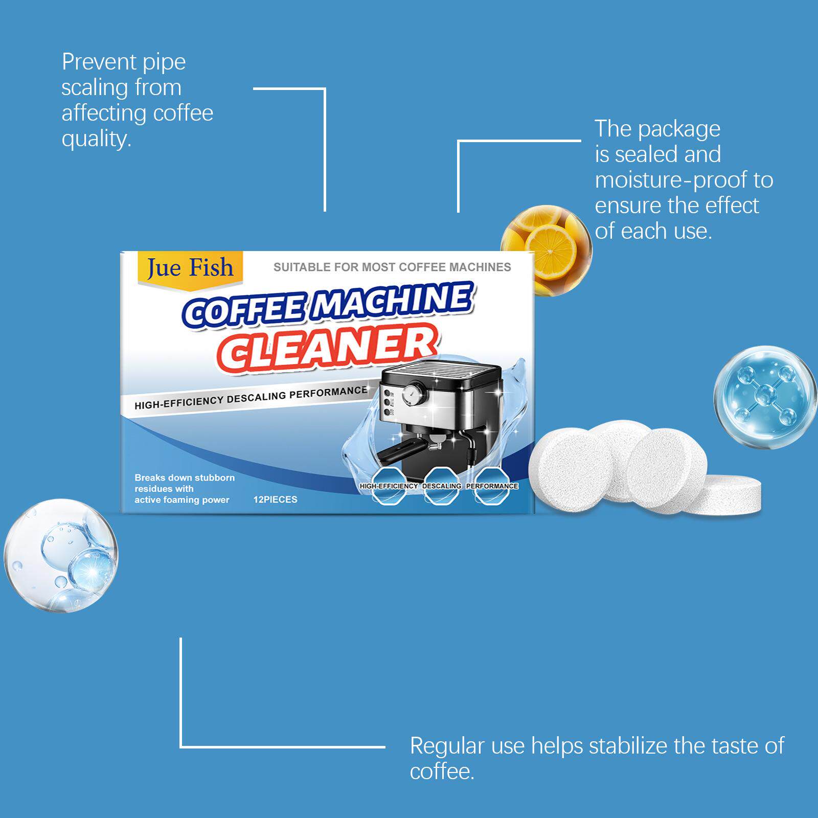 📚 JUE FISH Coffee Machine Descaling Tablets - For Cleaning and