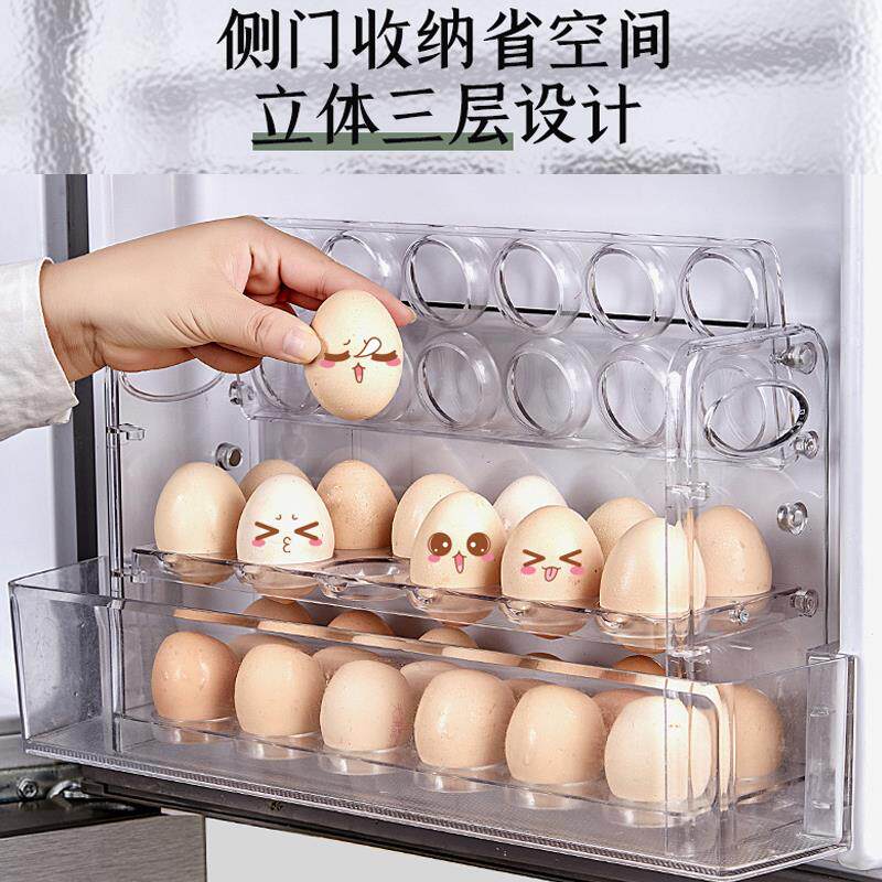 📚 冰箱侧门鸡蛋架托专用放鸡蛋的收纳盒格装三层鸡蛋盒子神器双开门