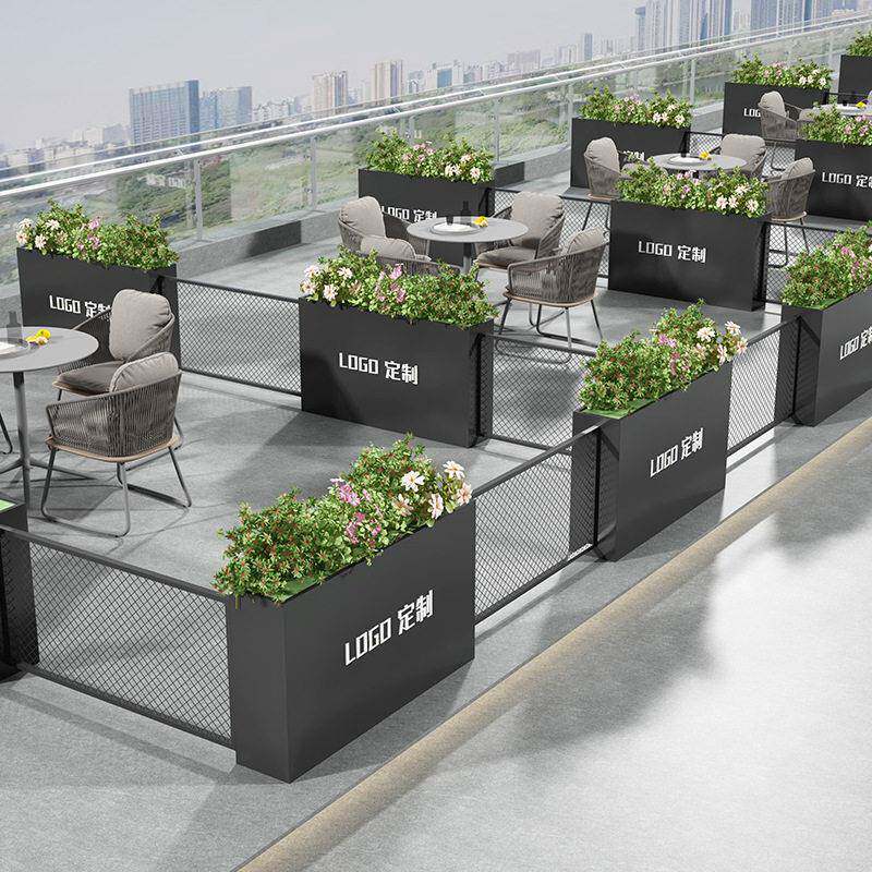 📚 定制花箱围栏隔断商业街门店餐饮咖啡广场外摆铁艺花箱网格组合