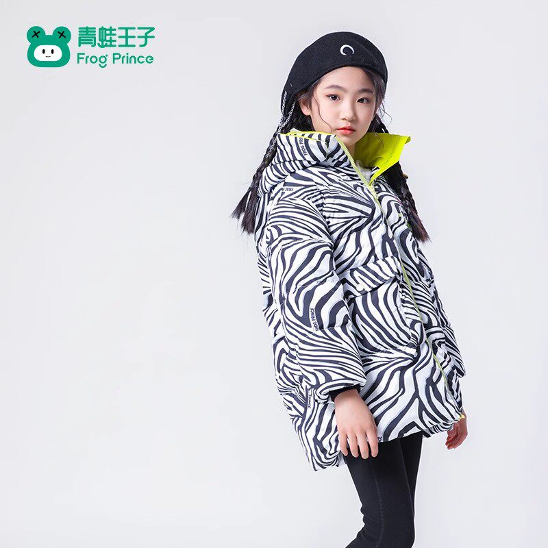 📚 青蛙王子童装女童冬季中长款羽绒服儿童冬装女孩加厚立领保暖外套