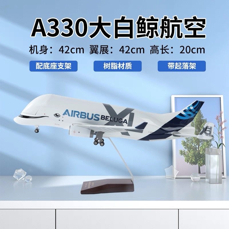 📚 42CM大白鲸飞机模型合金仿真空客A330超级运输机摆件儿童飞机玩具