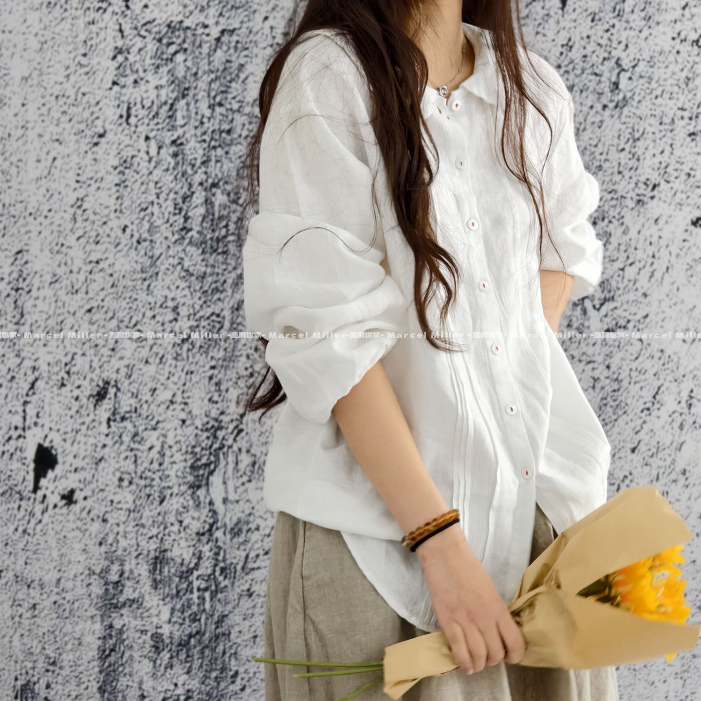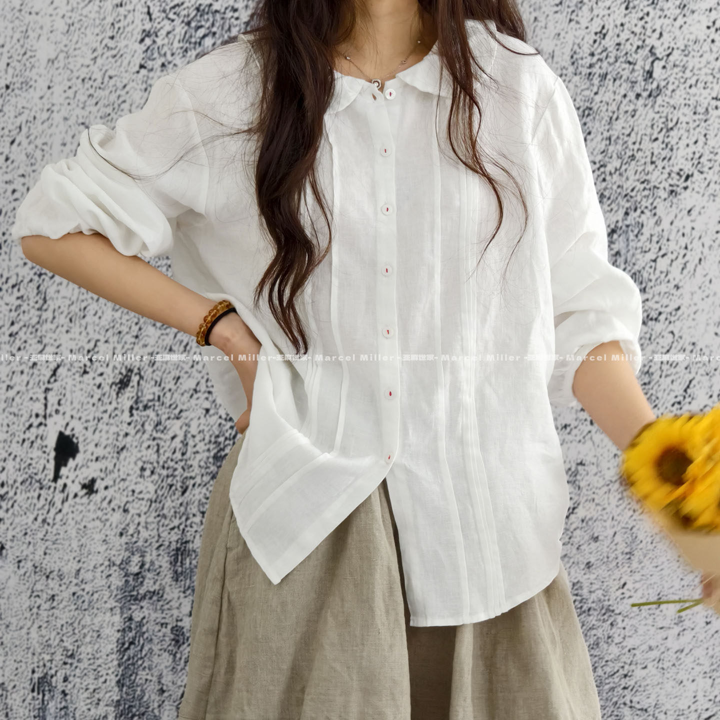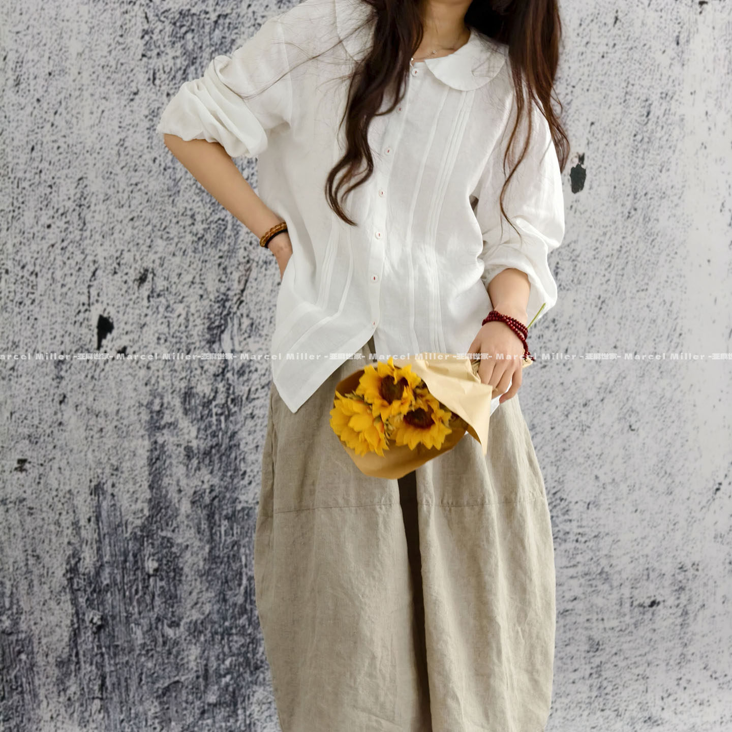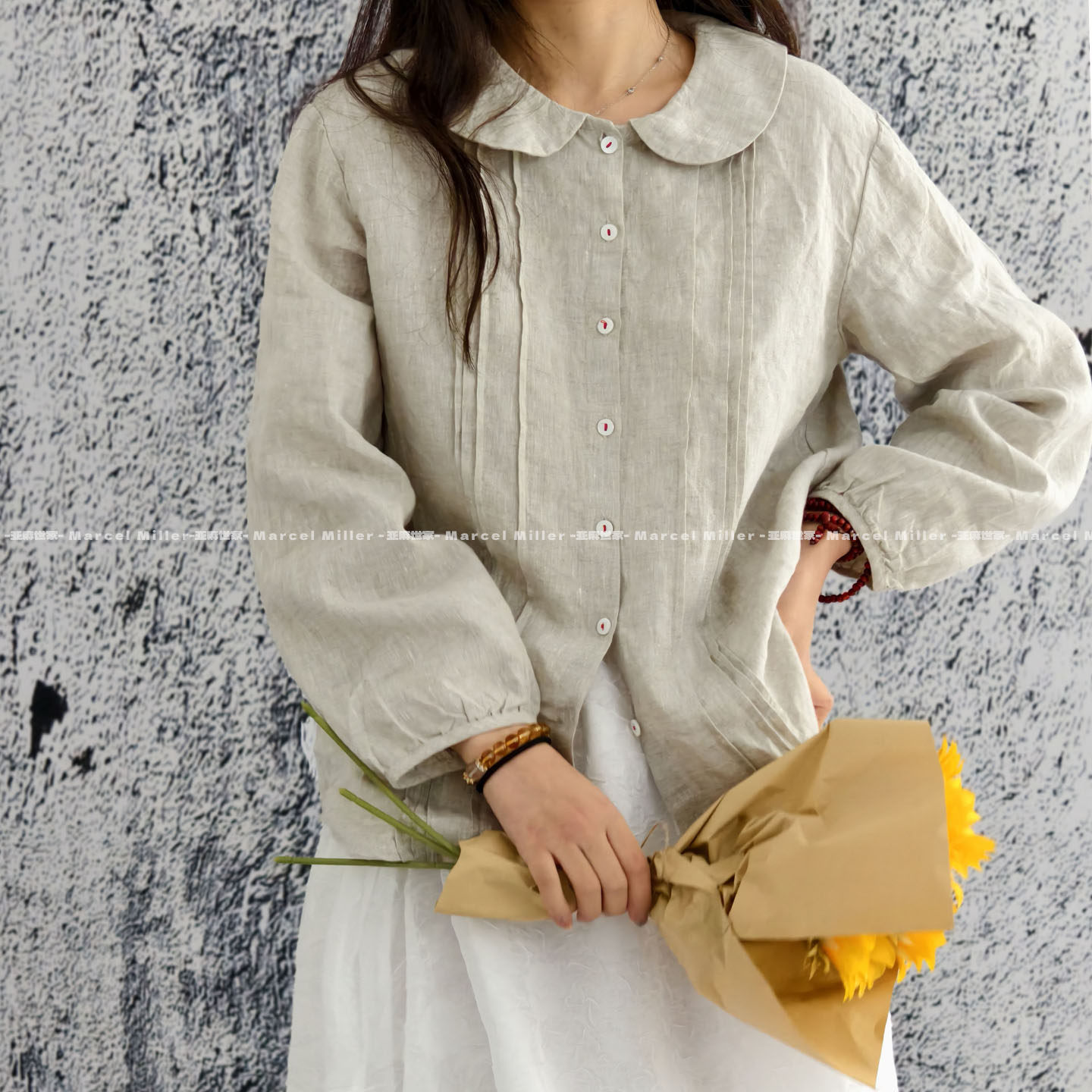 📚 彼得潘·文艺复古娃娃领汉麻衬衫宽松慵懒风衬衣纯麻长袖开衫上衣