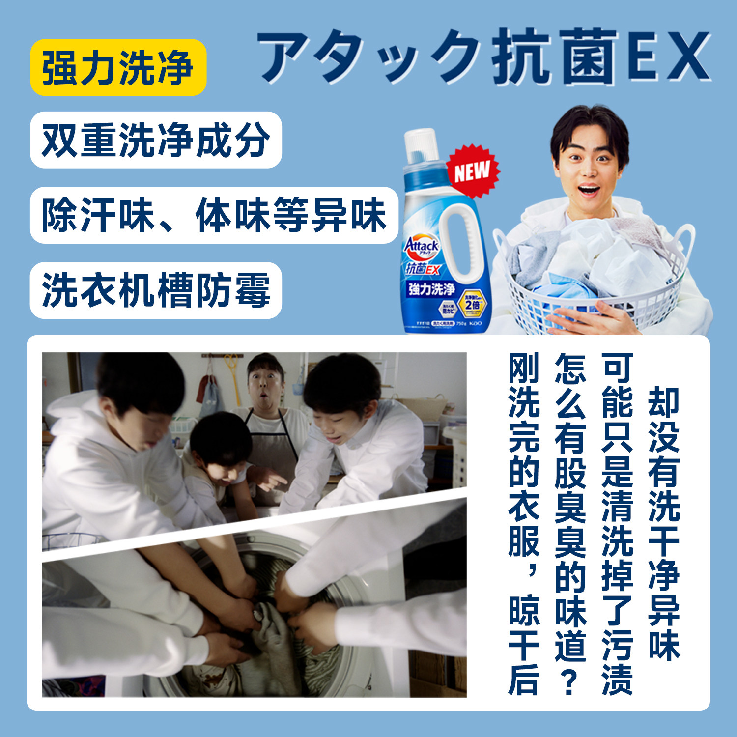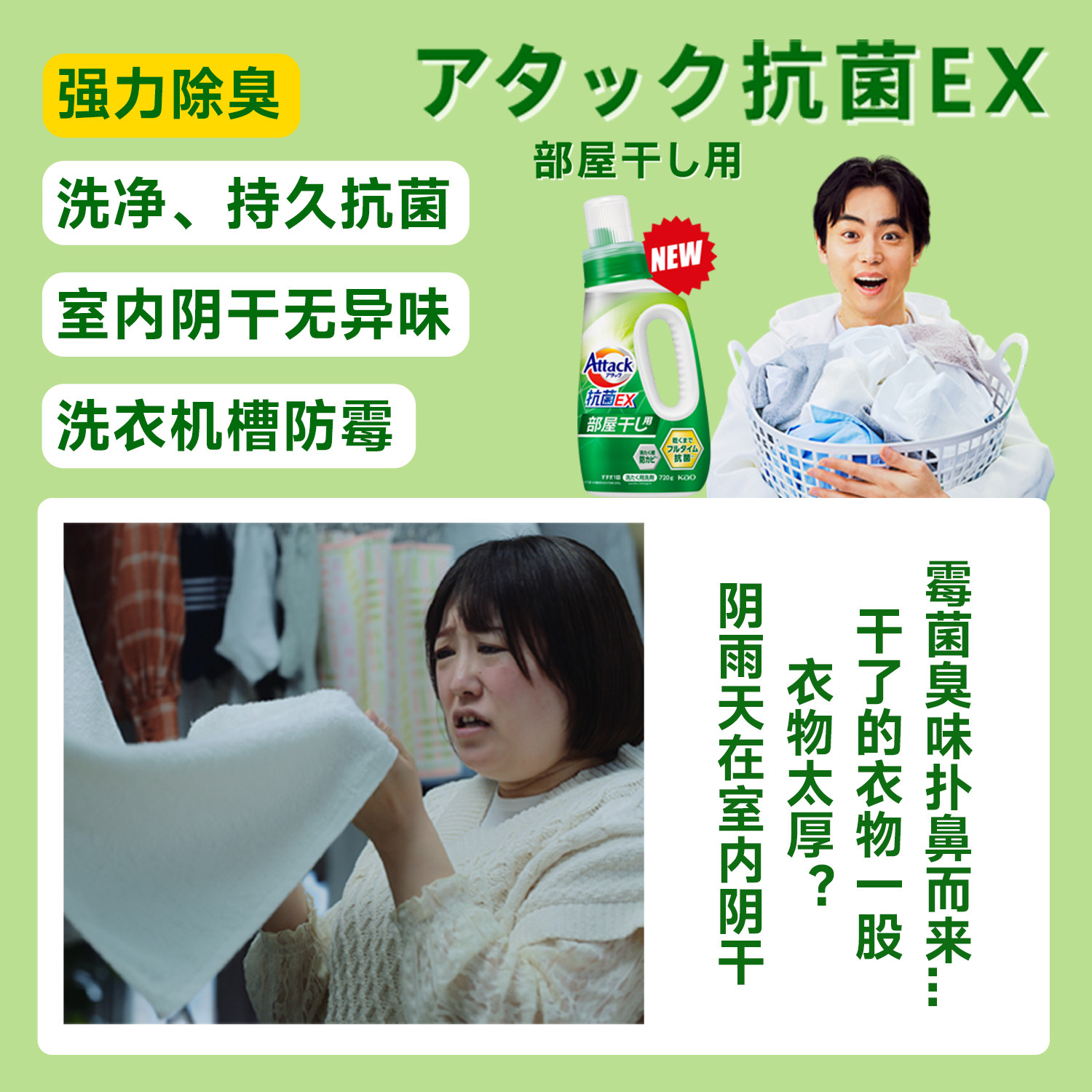 📚 日本花王EX洗衣液attack酵素抗菌室内防霉阴干消臭洗衣液