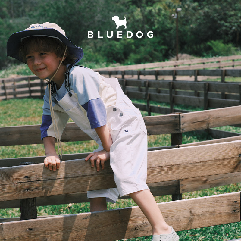 📚 BLUEDOG蓝狗韩国夏季新款彩色拼接七分袖T恤夏装女童男童短袖