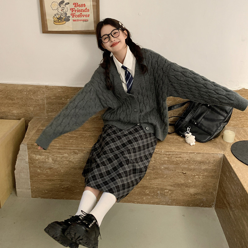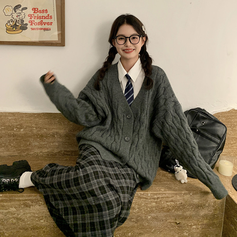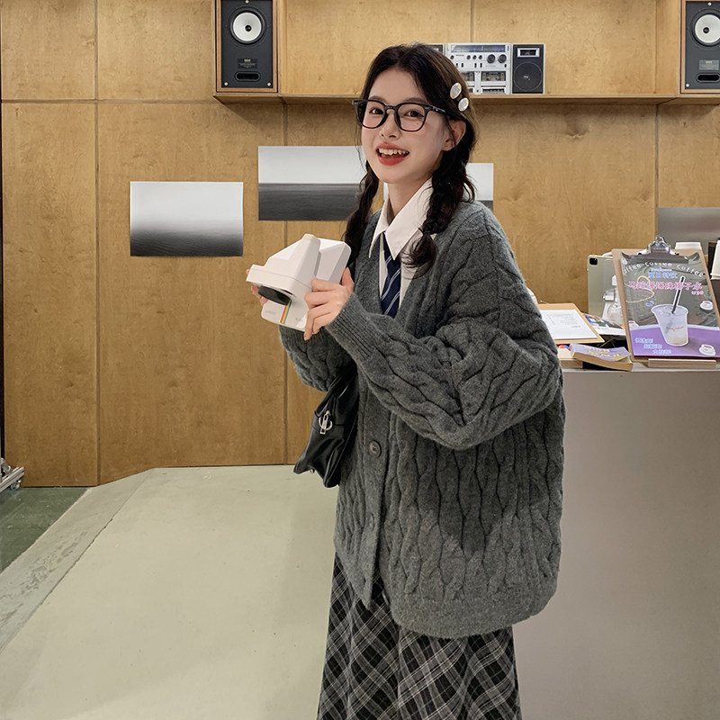 📚 东京岁时记JK毛衣女开春秋冬款学院风针织开衫宽松显瘦外套灰雾纪