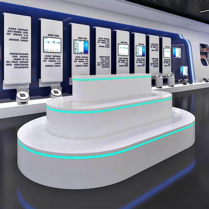 📚 展厅定制展示台鲜花店货架展示柜网红圆形发光展示架异形中岛展台