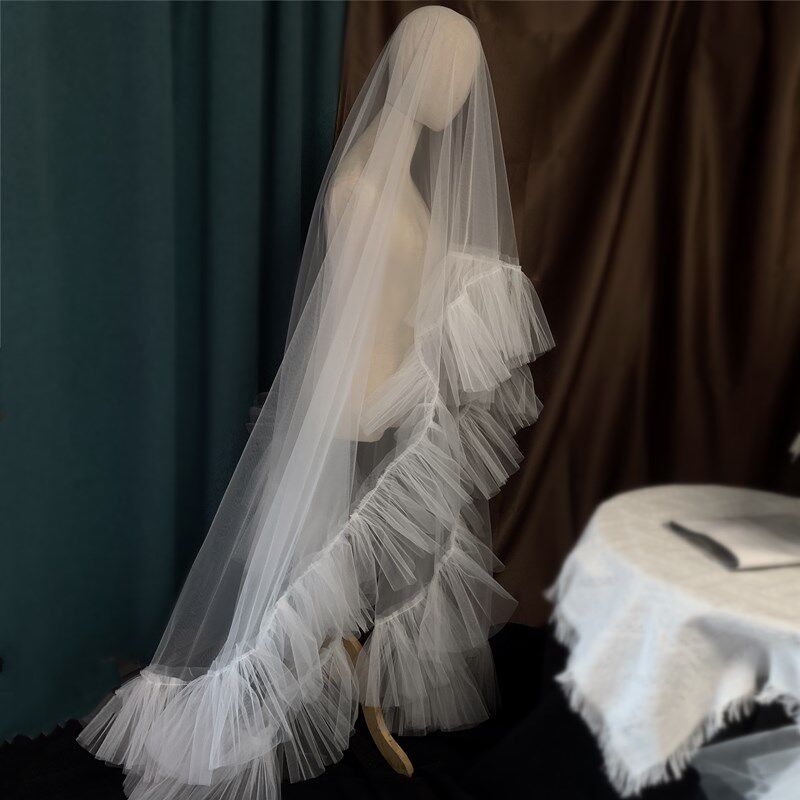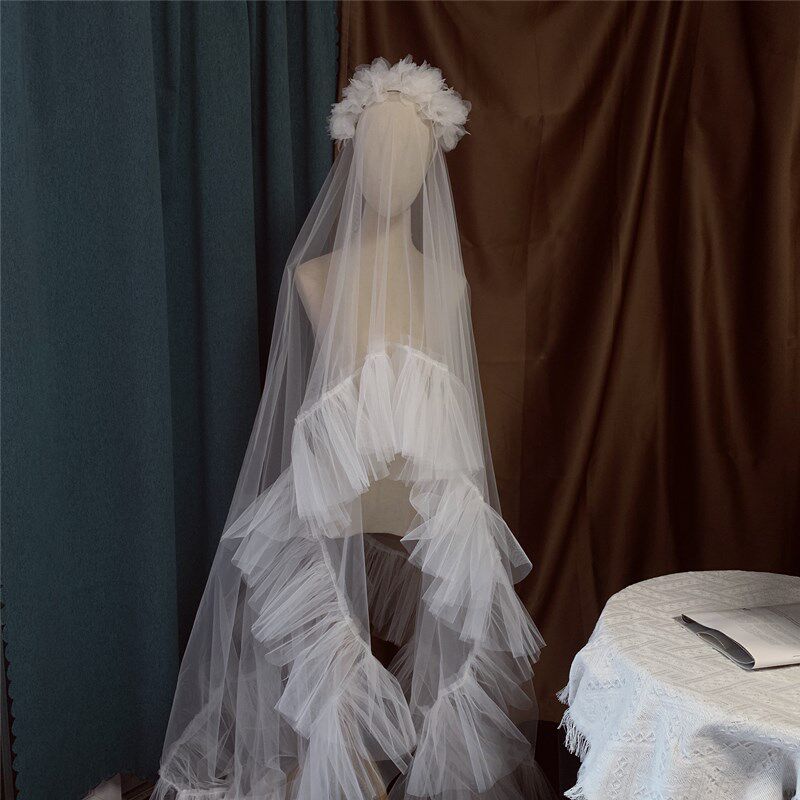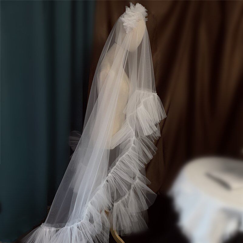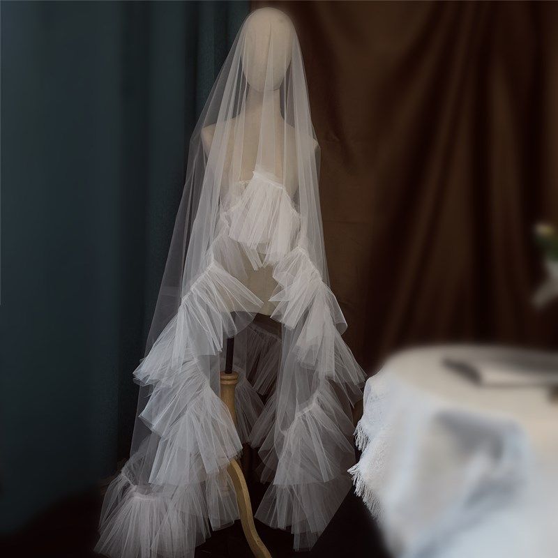 📚 新款超仙头纱抓杆纱新娘结婚礼造型头饰白色影楼摄影拍片道具时尚