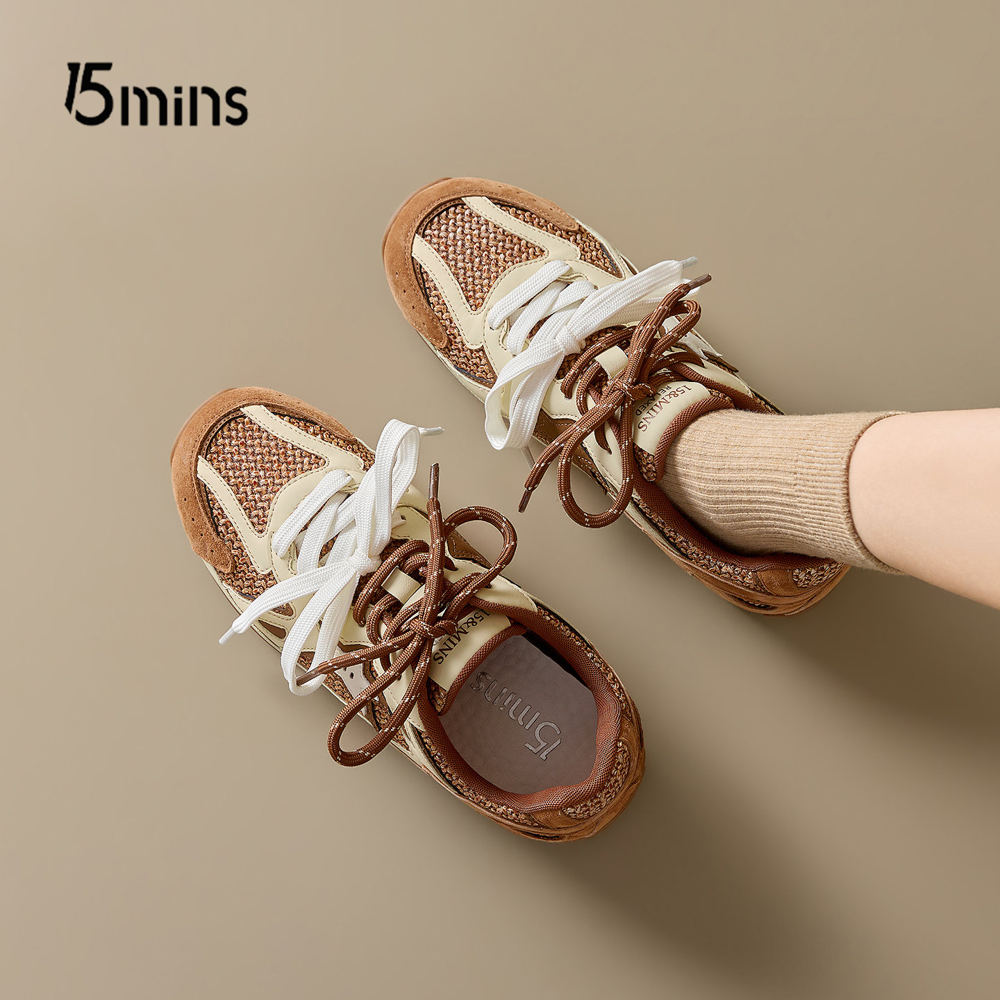 📚 15mins复古风德训鞋女2026新款春季软底休闲运动鞋棕色系带板鞋子