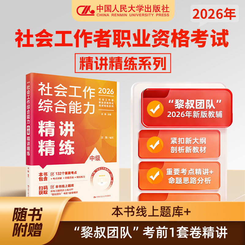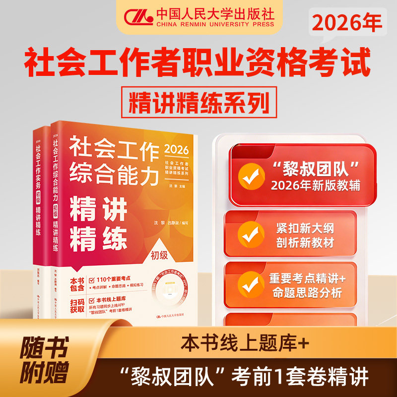 📚 中国人民大学出版社官方2026年社会工作者职业资格考试精讲精练初级中级社工证备考辅导书历年真题社会工作者初级教材2026年