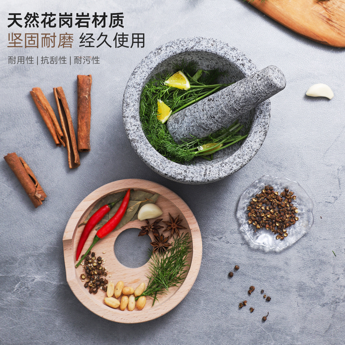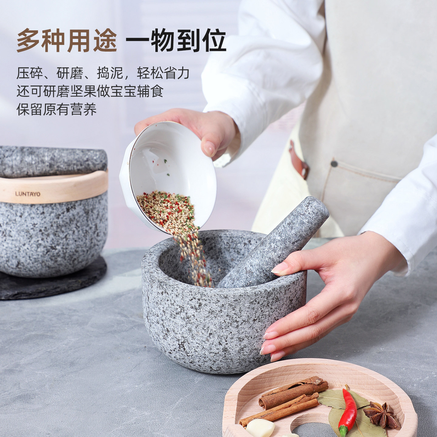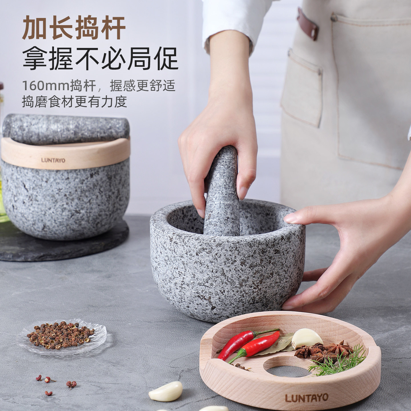 📚 luntayo捣蒜器石臼家用花岗岩蒜臼子手动擂钵蒜泥中药研磨碗