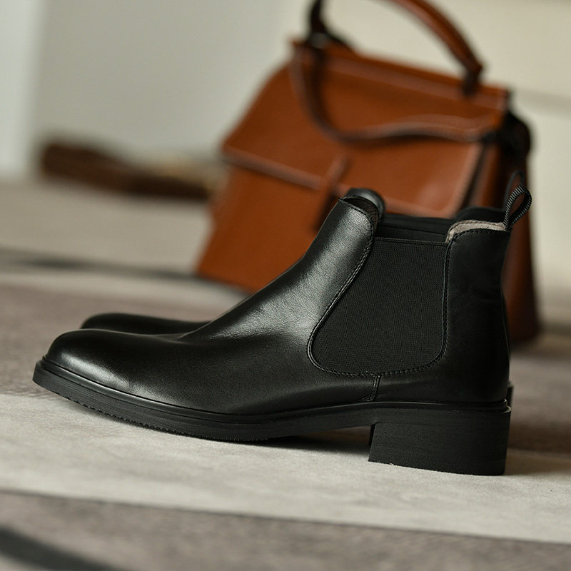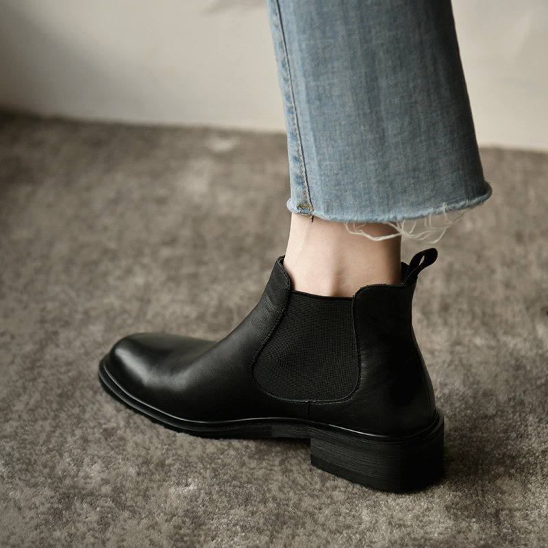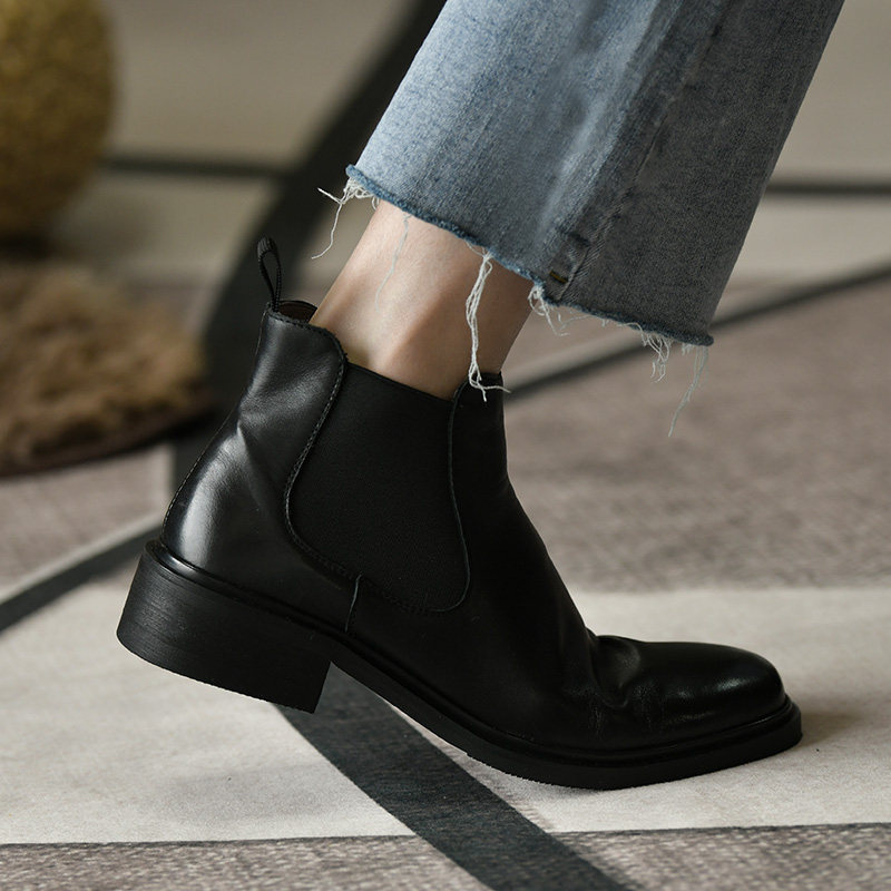📚 皮厚先生 中跟黑色女靴及踝靴女 秋季粗跟短靴女时尚真皮切尔西靴