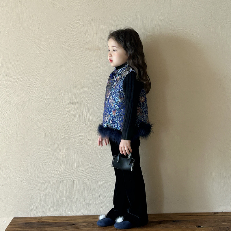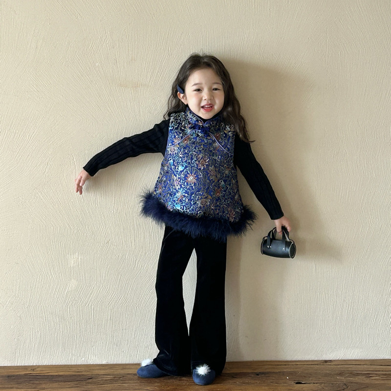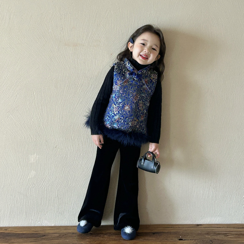 📚 清仓女童中国风拜年服夹棉马甲2025冬季小女孩新中式唐装汉服套装