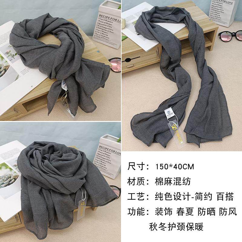 📚 深灰色围巾男女秋冬2025新款薄棉麻纯色文艺长条短款护颈围脖丝巾