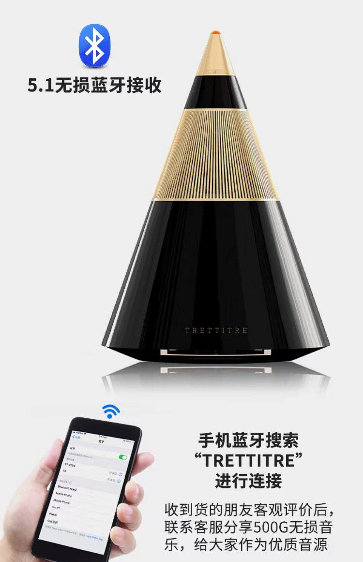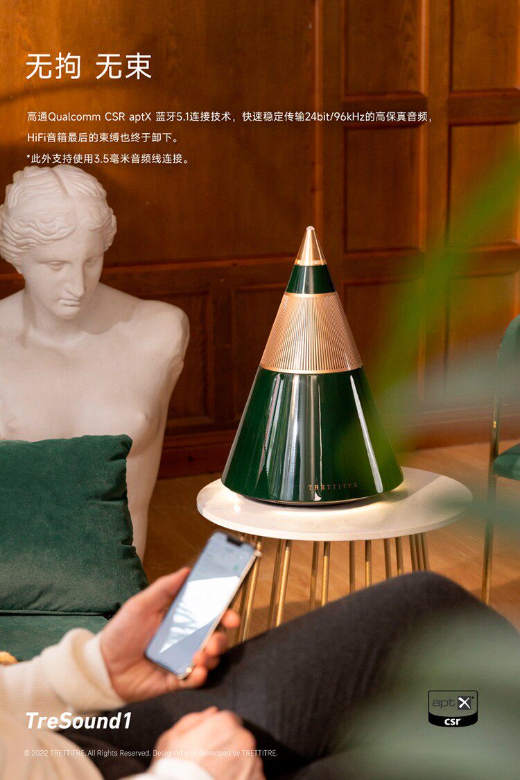 📚 钢琴漆无线蓝牙360度重低音炮台面桌面音箱TRETTITRE TreSound1
