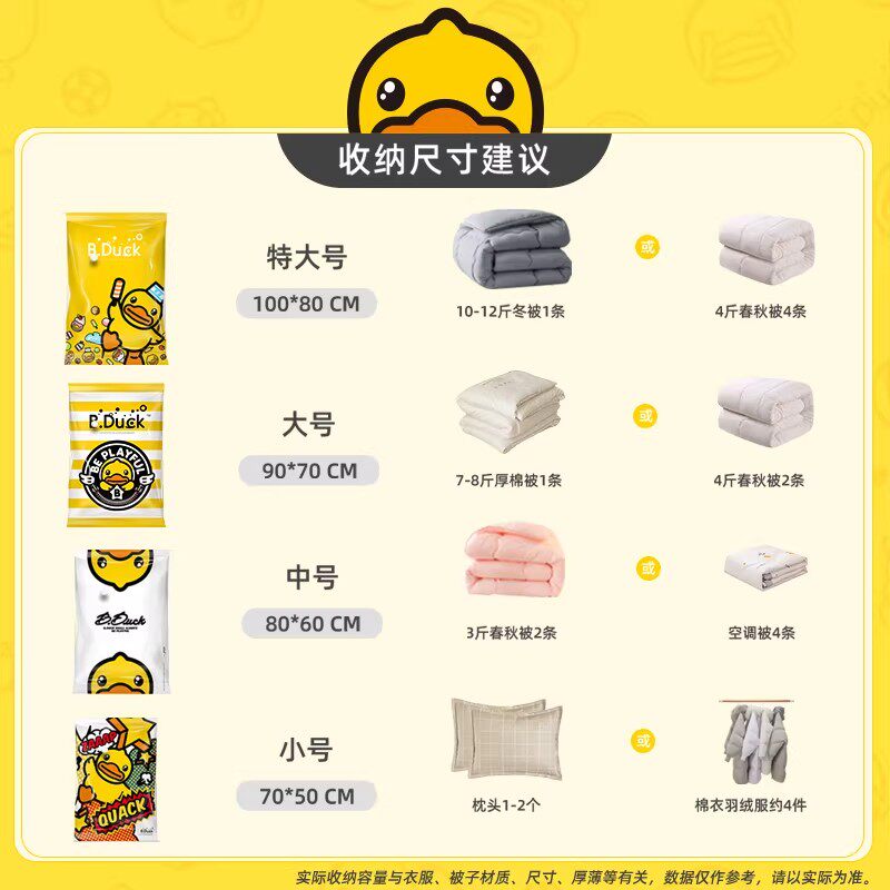 📚 收纳博士小黄鸭真空压缩袋衣物棉被鹅绒被送电泵