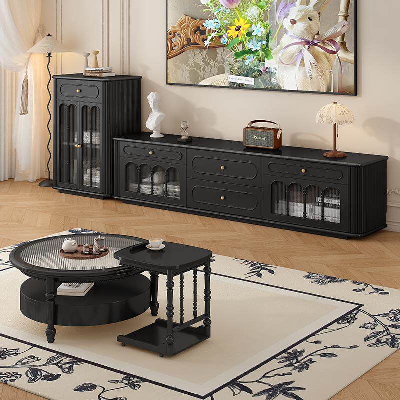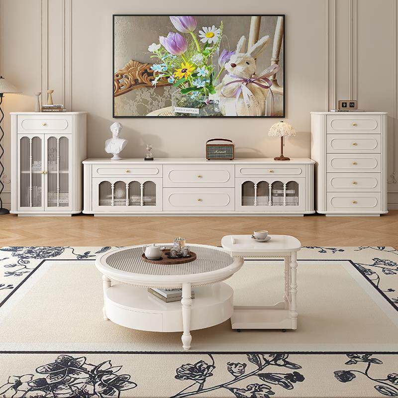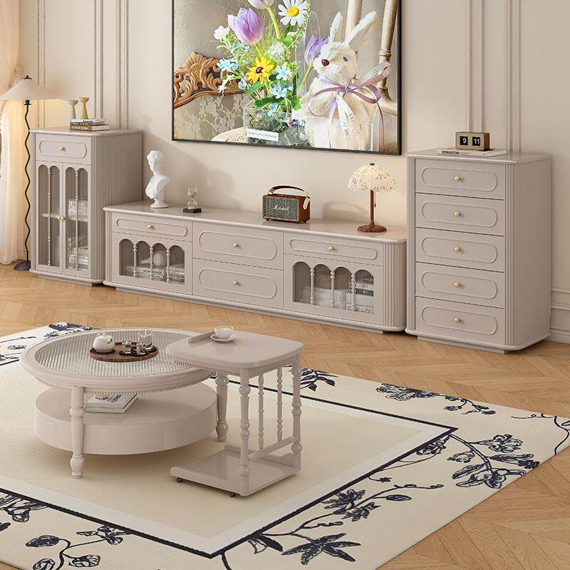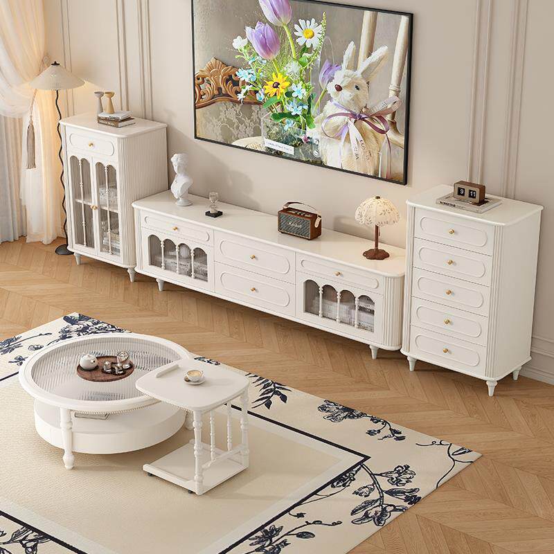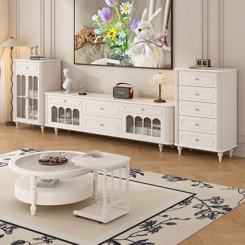 📚 法式奶油风纯实木落地电视柜茶几组合现代简约小户型客厅高柜60cm