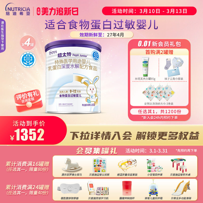 📚 纽太特 特殊医学用途婴儿乳蛋白深度水解配方食品过敏450g*4