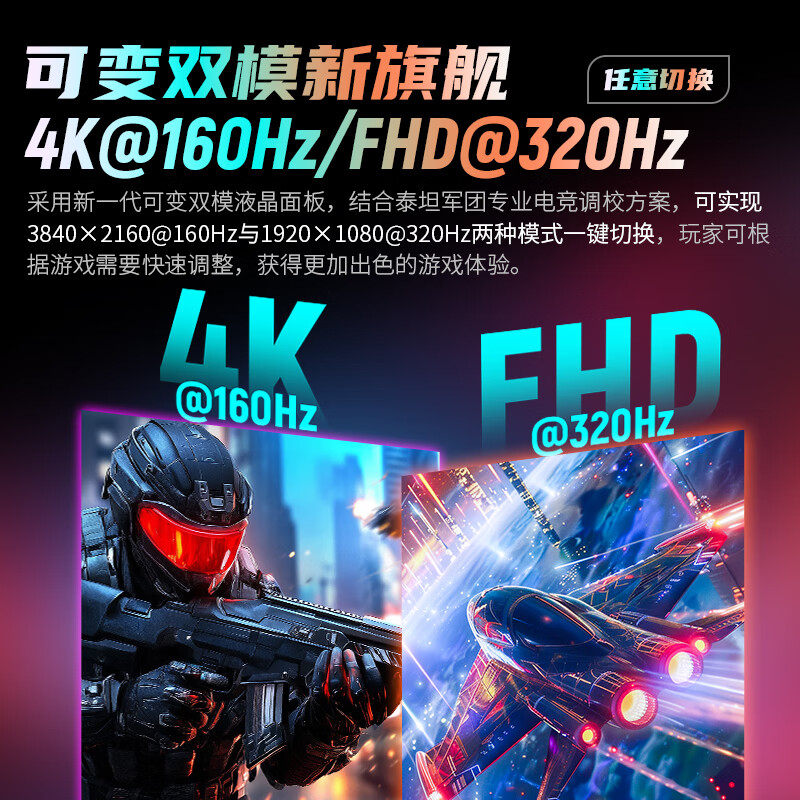 📚 泰坦军团4K显示器27英寸160Hz双模电竞P2712V电脑320Hz屏幕240Hz