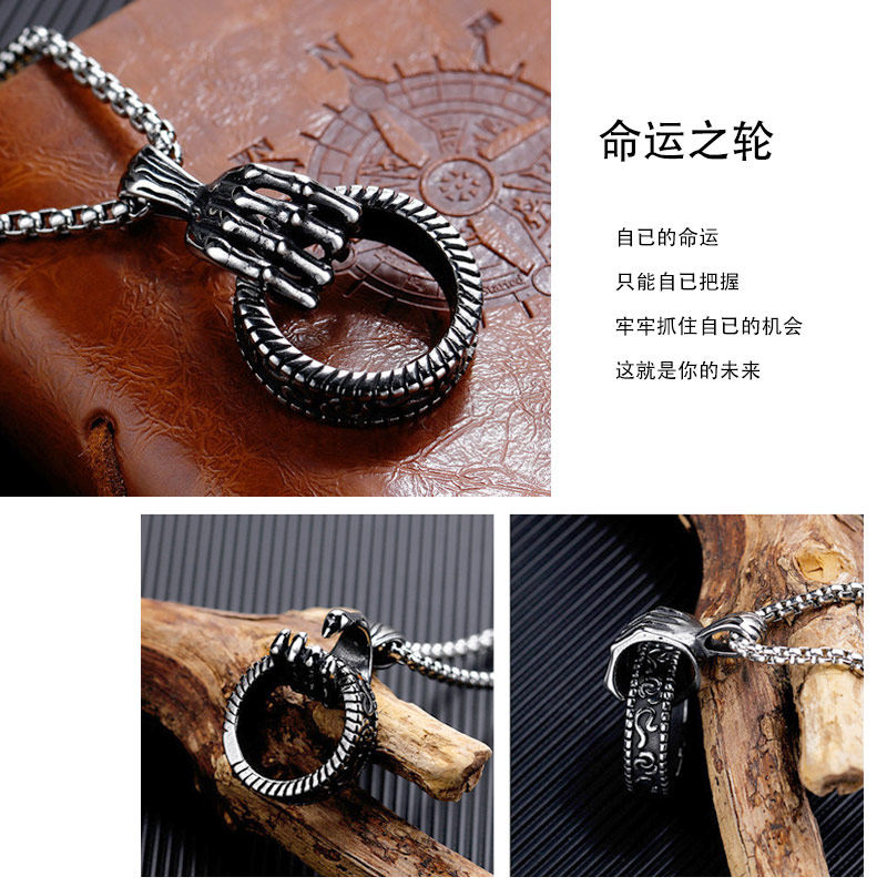 📚 命运之轮骷髅项链男生潮流吊坠钛钢饰品朋克蛇骨链配饰小众设计