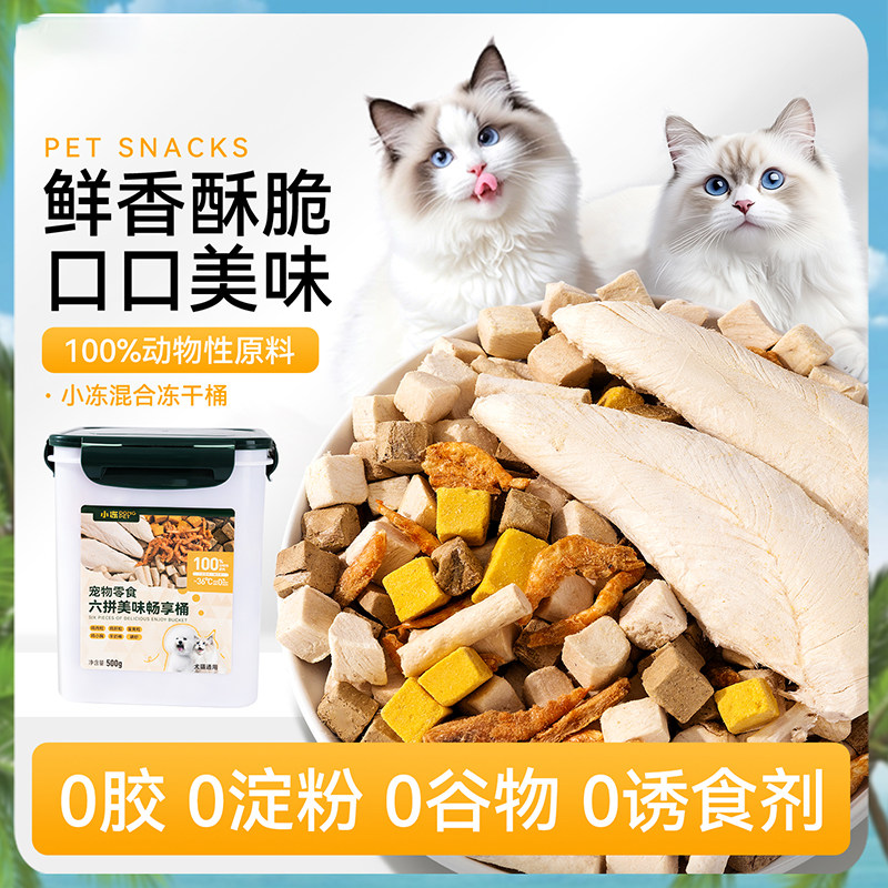 📚 猫咪混合冻干桶成箱批鸡肉粒鸡胸肉蛋黄主食冻干猫狗通用猫咪零食