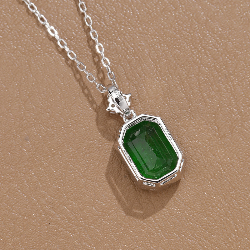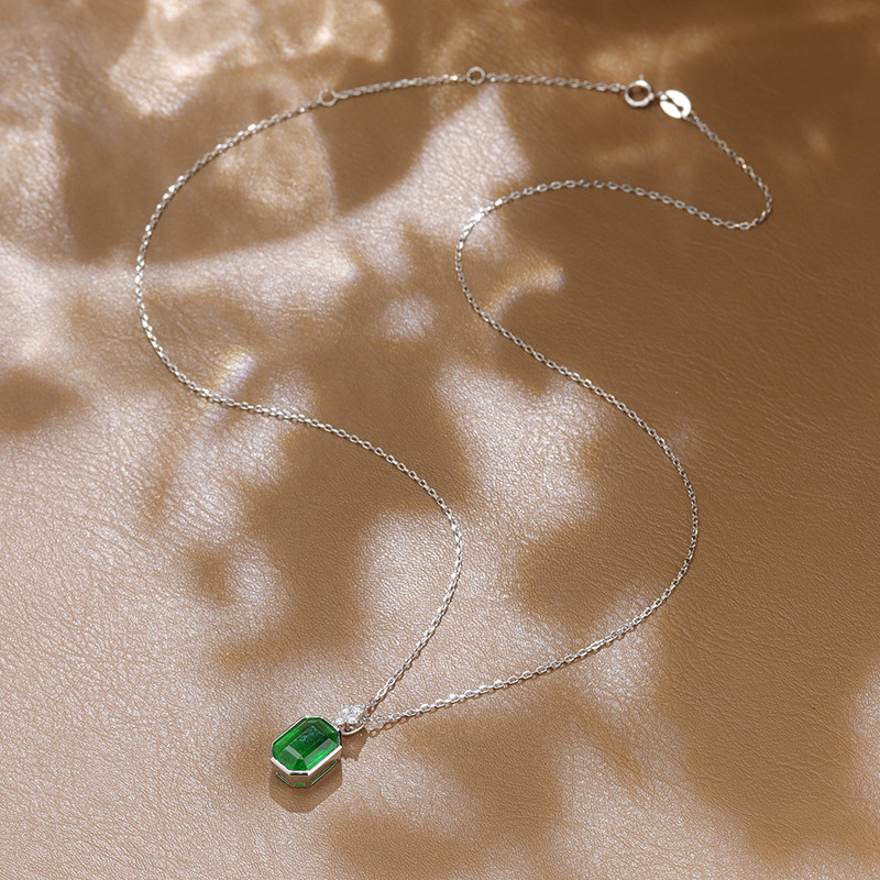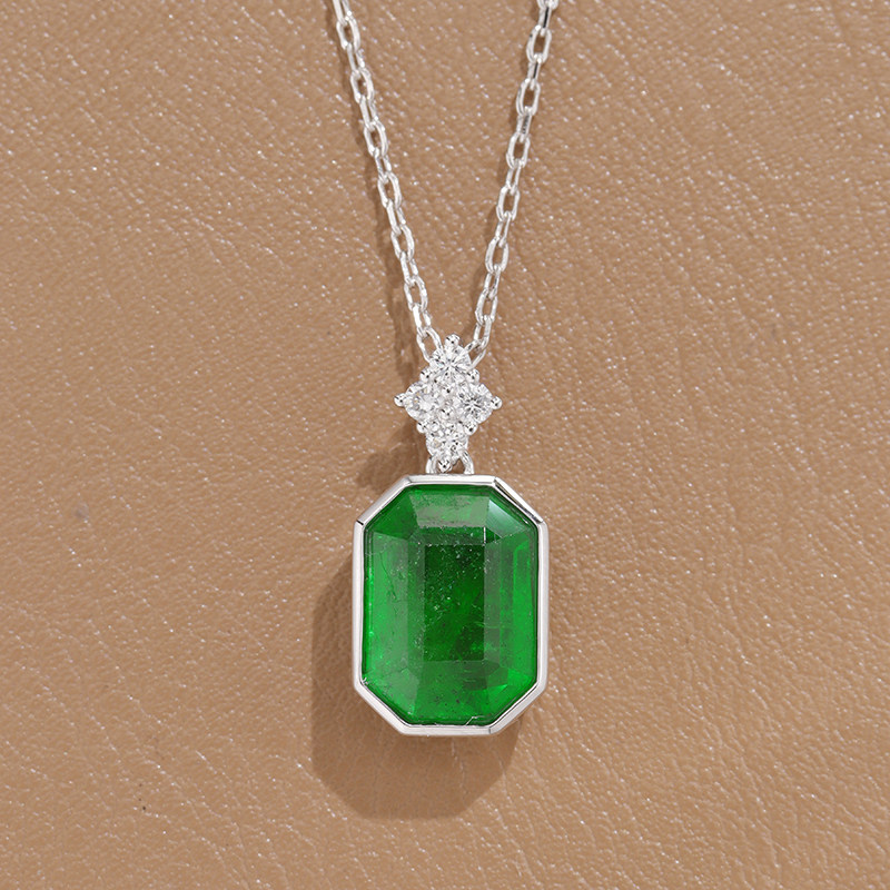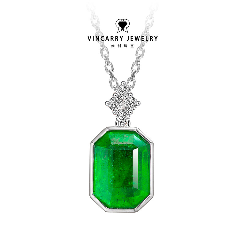 📚 VinCarry轻奢祖母绿宝石项链女镶钻吊坠锁骨链颈饰培育祖母绿人造