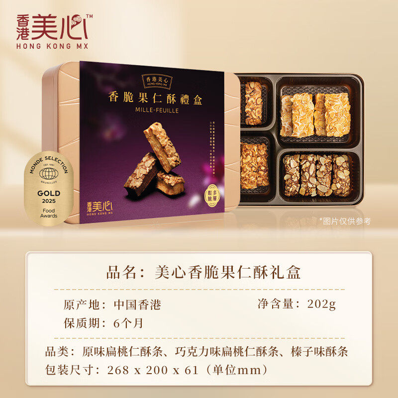📚 香港美心香脆果仁酥礼盒202g进口零食糕点杏仁条曲奇饼干特产年货