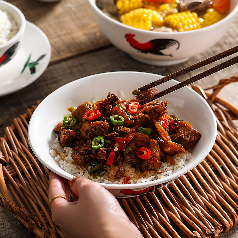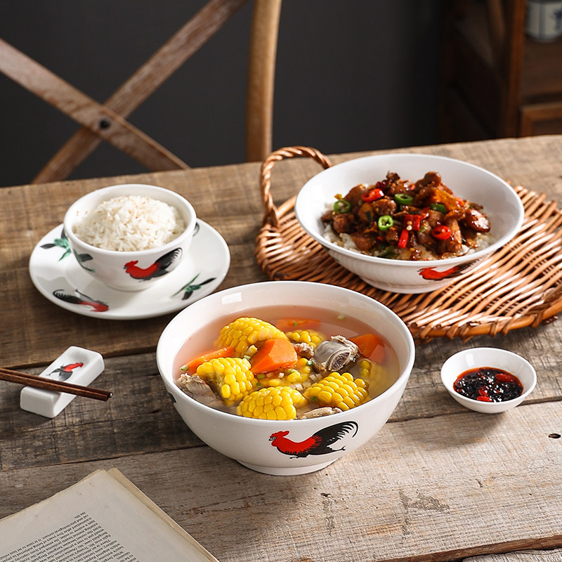 📚 陶瓷公鸡碗怀旧复古老式鸡公碗 公鸡寸斗碗TVB周星驰电影道具碗