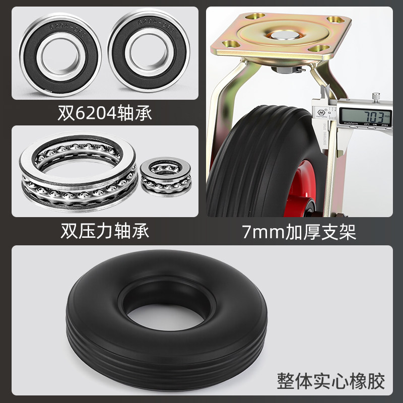 📚 8寸10寸橡胶实心定向轮实心轮平板车轮推车轮拖车轮重型万向脚轮