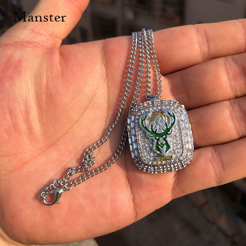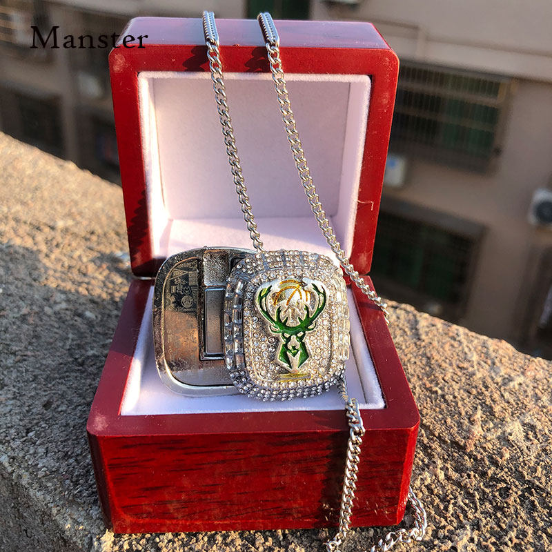 📚 字母哥雄鹿湖人勇士骑士总冠军戒指科比詹姆斯库里项链钥匙扣