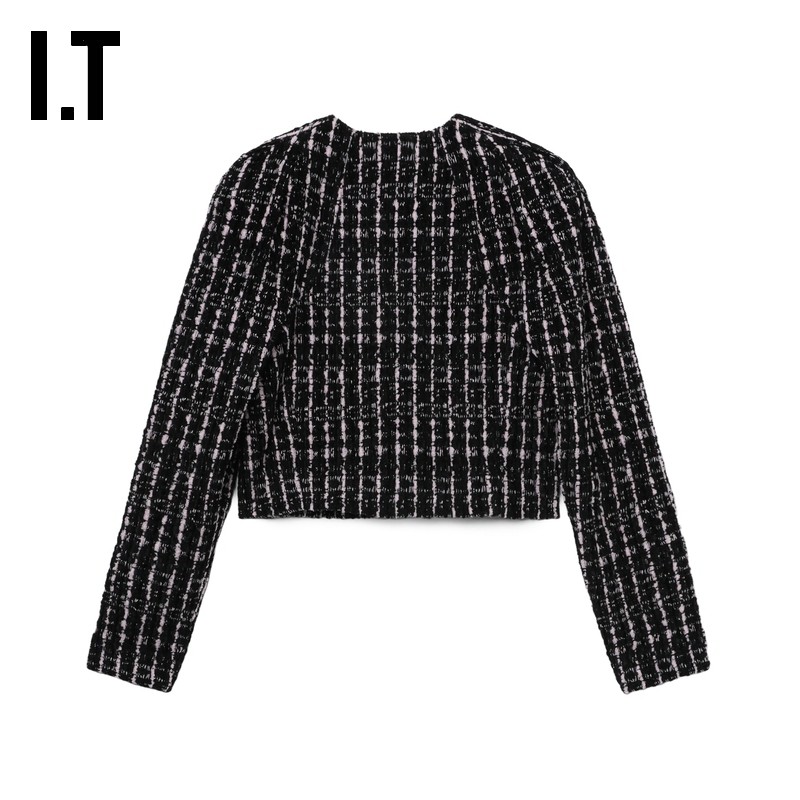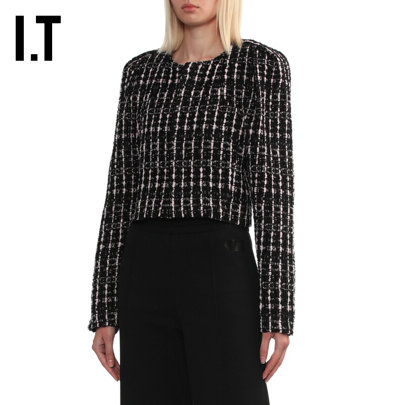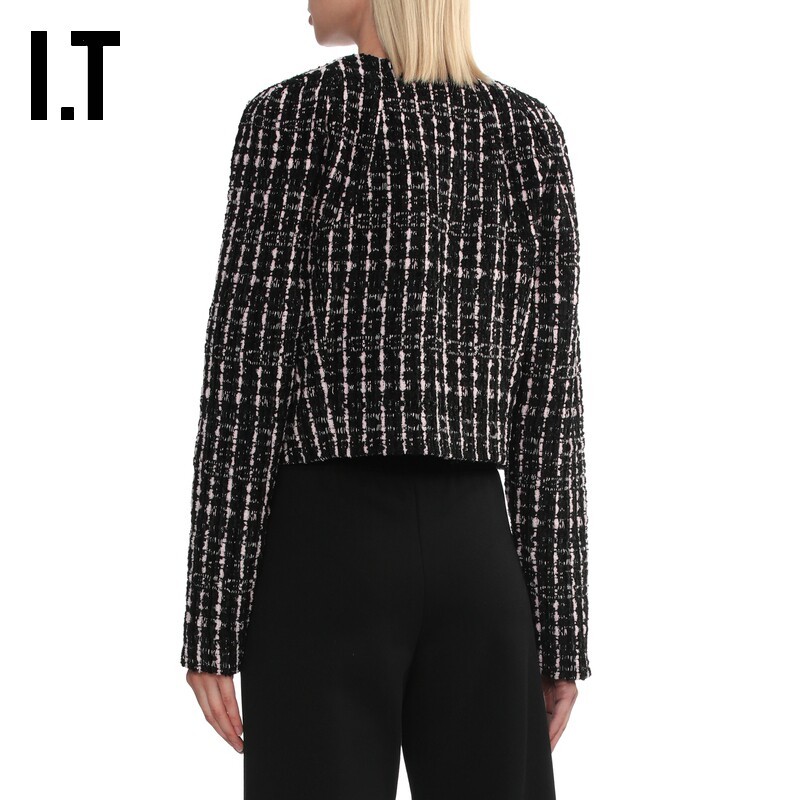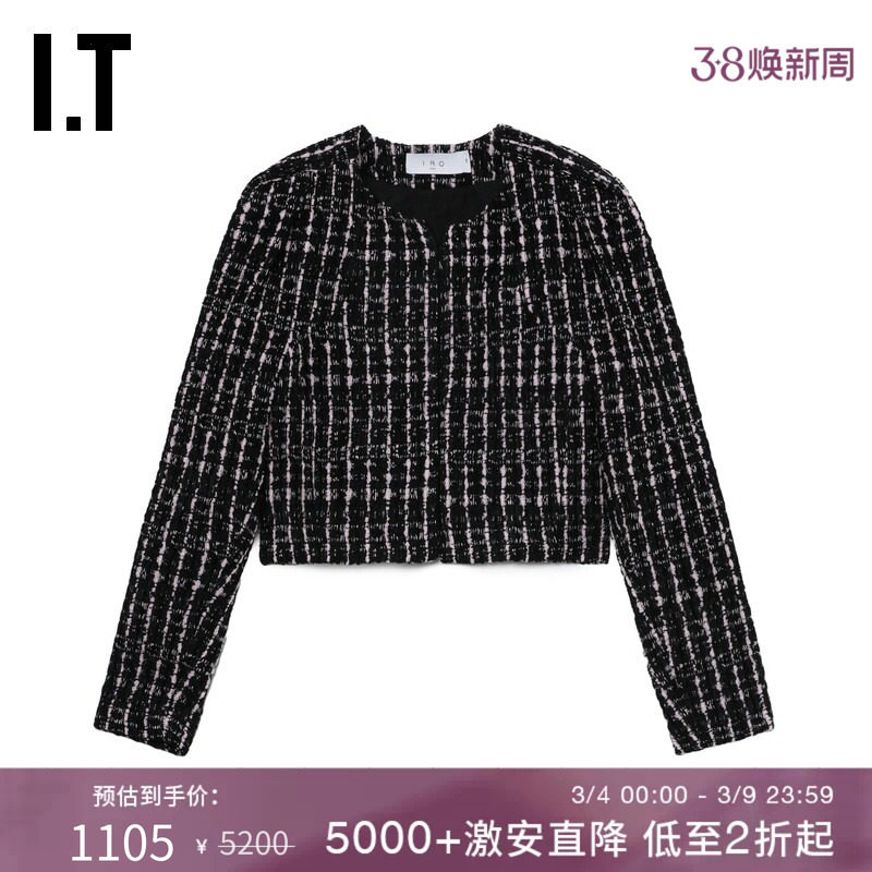 📚 IT IRO女装合身短款粗花呢夹克新款摩登时尚杂色编织外套PERRINXN