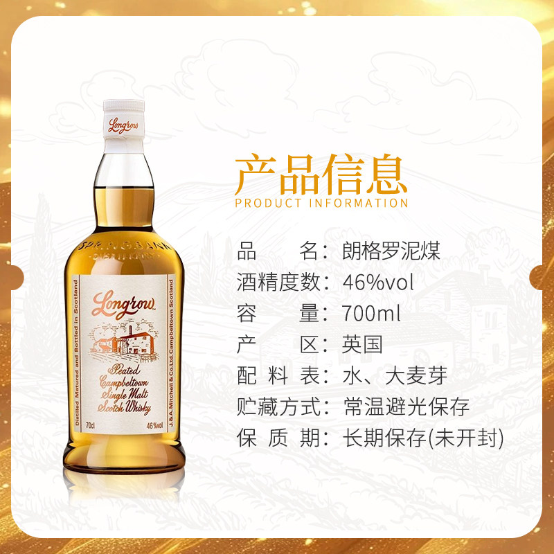 📚 Longrow/朗格罗泥煤700ML 苏格兰单一麦芽威士忌云顶旗下进口洋酒