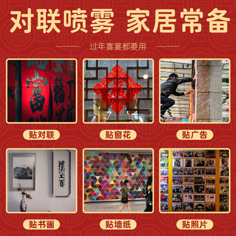 📚 日本春联喷胶春节贴对联神器无痕粘广告窗花剪纸强粘喷雾胶不伤墙体不留痕多功能易清洁喷雾型自喷胶专用胶水
