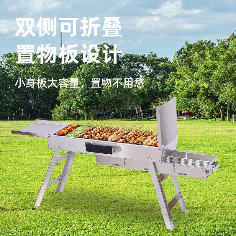 📚 热销不锈钢烧烤炉户外便携可折叠烧烤架露营庭院烤炉炭炉