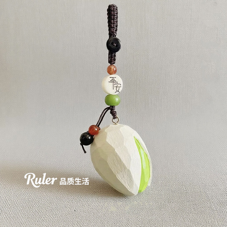 1. 创意独特:这款木雕开心果实钥匙扣挂件,设计独特,寓意美好,让人一看就心生欢喜。