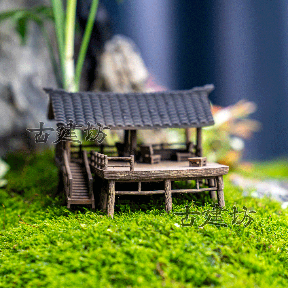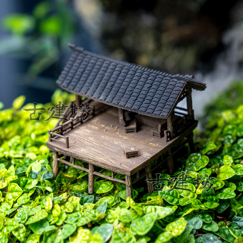 📚 古建坊鱼缸造景微景观盆景假山古风建筑凉亭3D打印树脂摆件模型中