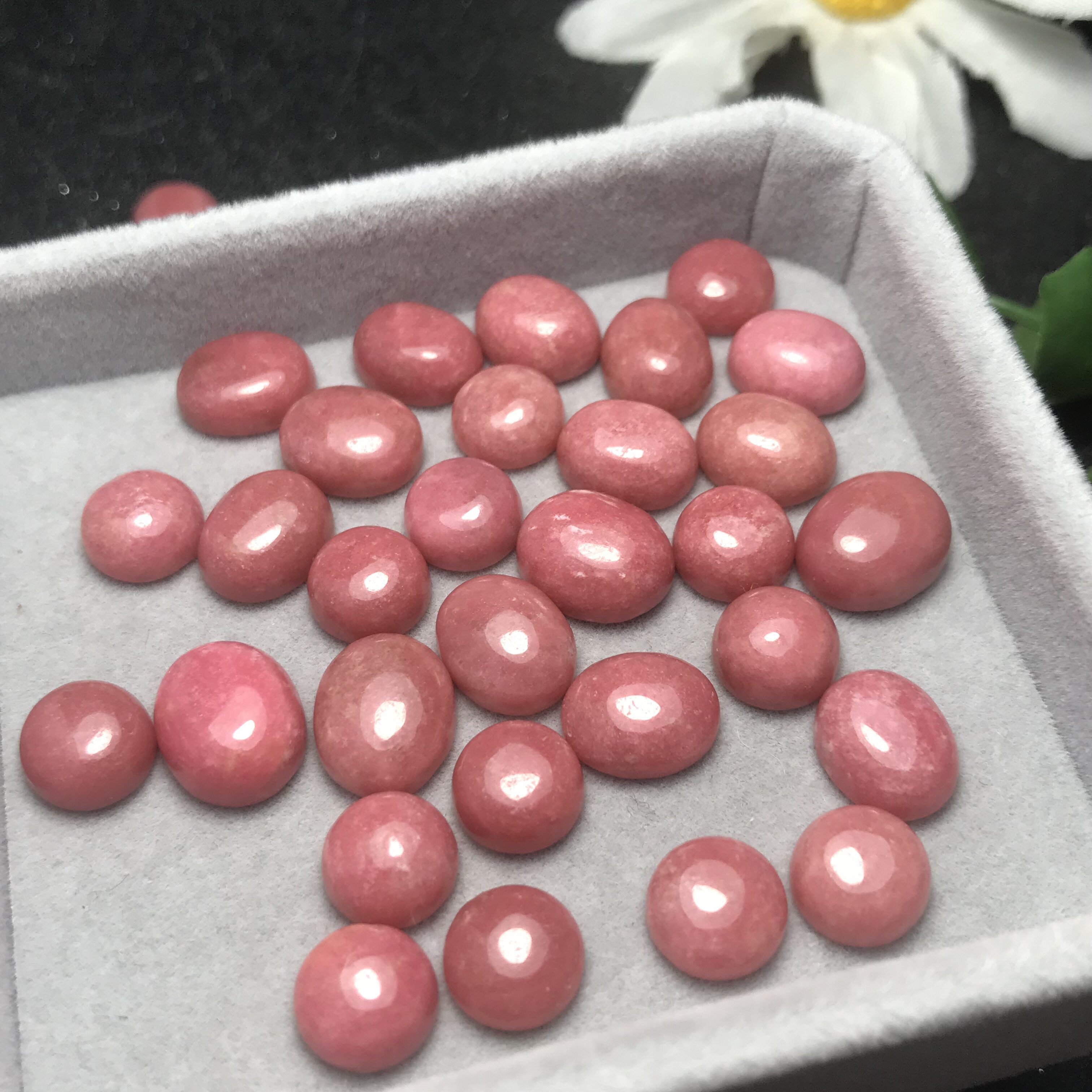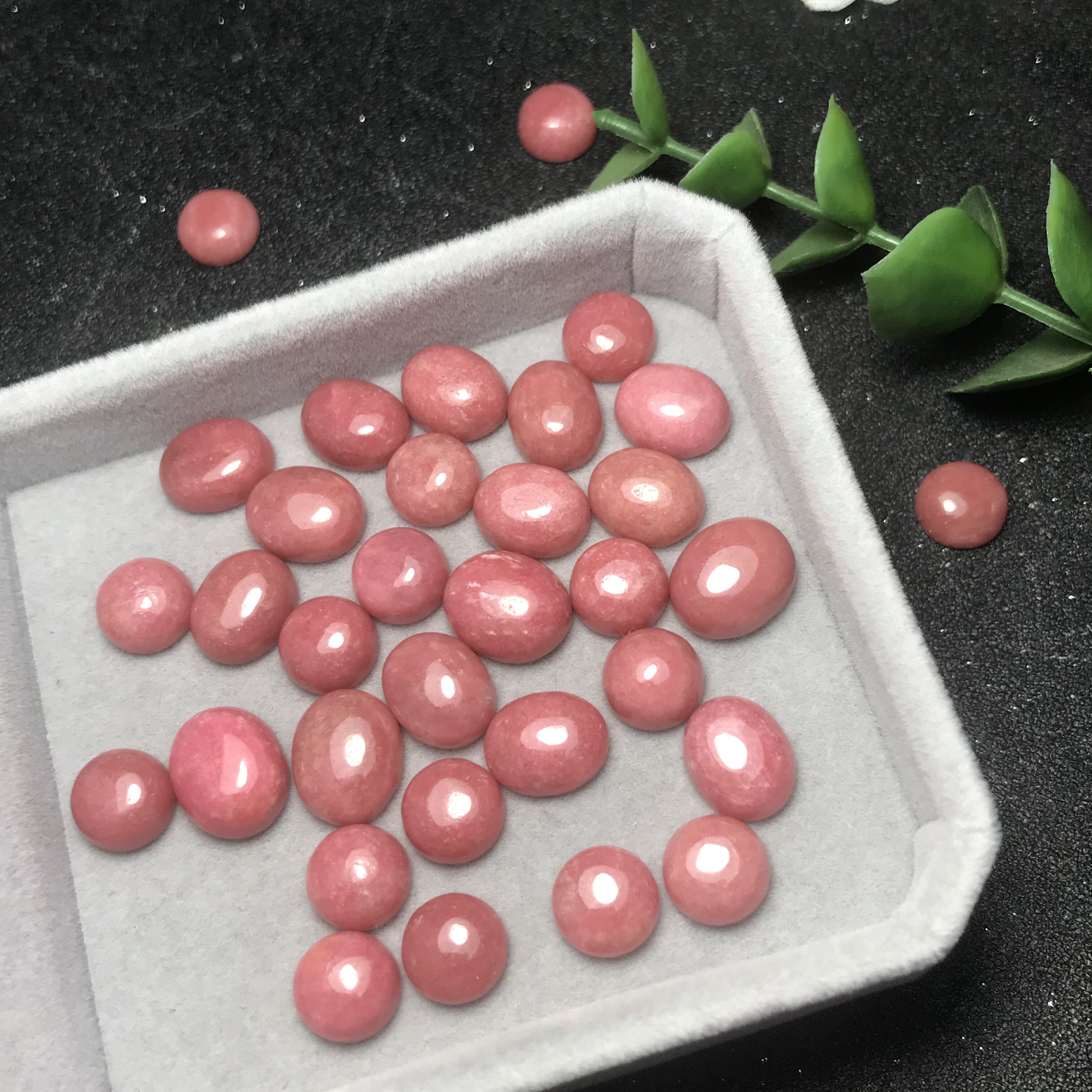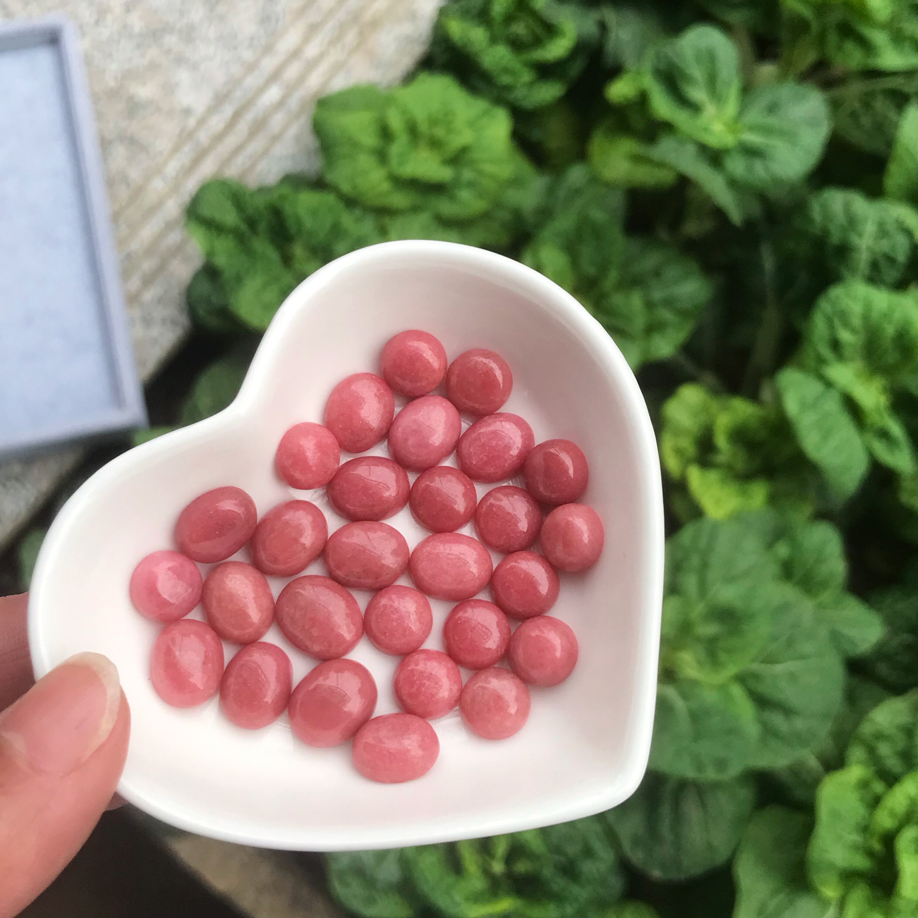 📚 天然红粉蔷薇石椭圆形平底蛋面裸石镶嵌绕线戒指吊坠耳钉手链