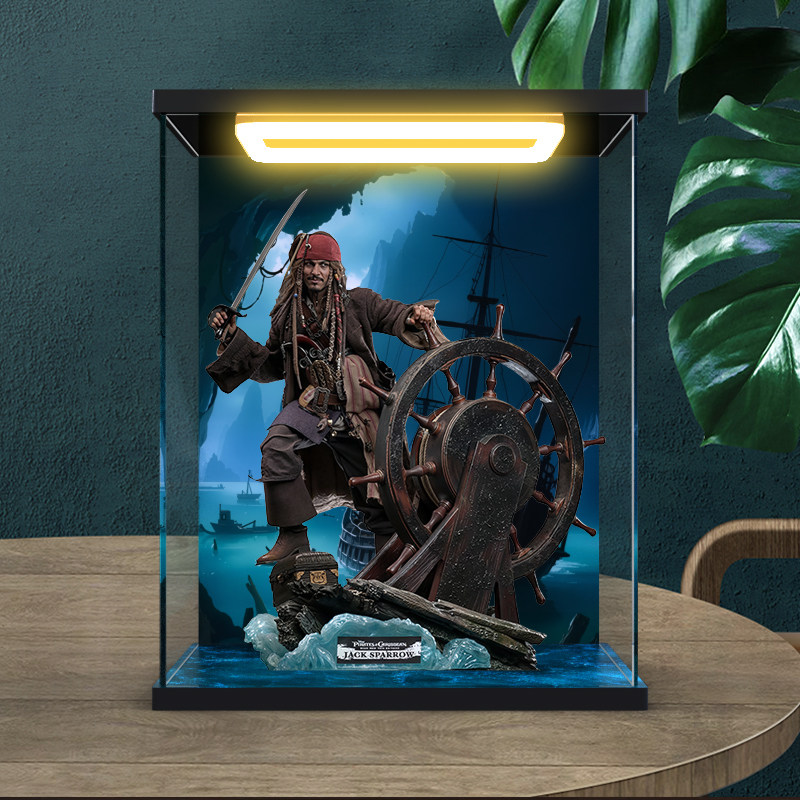 📚 适用 加勒比海盗5杰克船长手办模型收纳回灯亚克力高透明展示柜