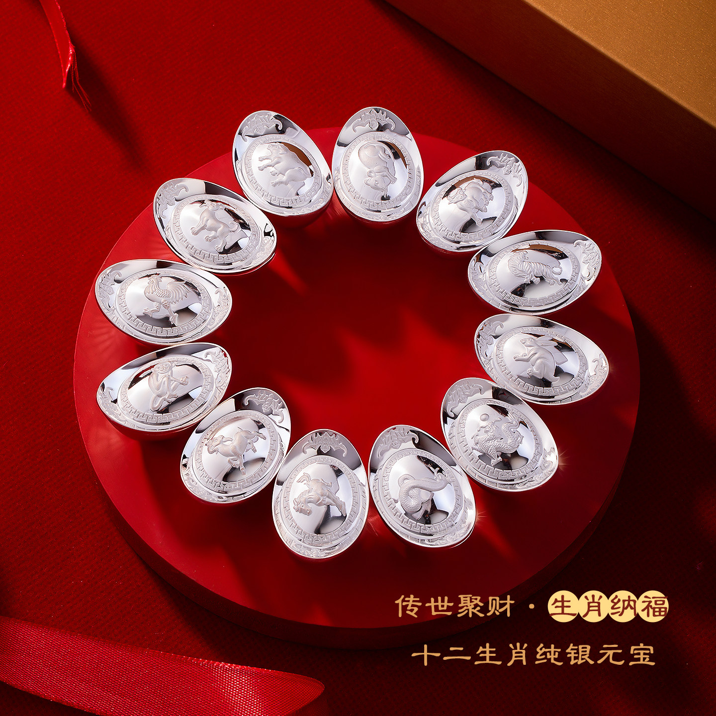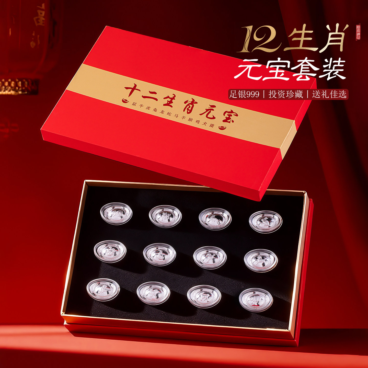 📚 999纯银十二生肖元宝套装收藏摆件 投资元宝银锭子商务礼品定制